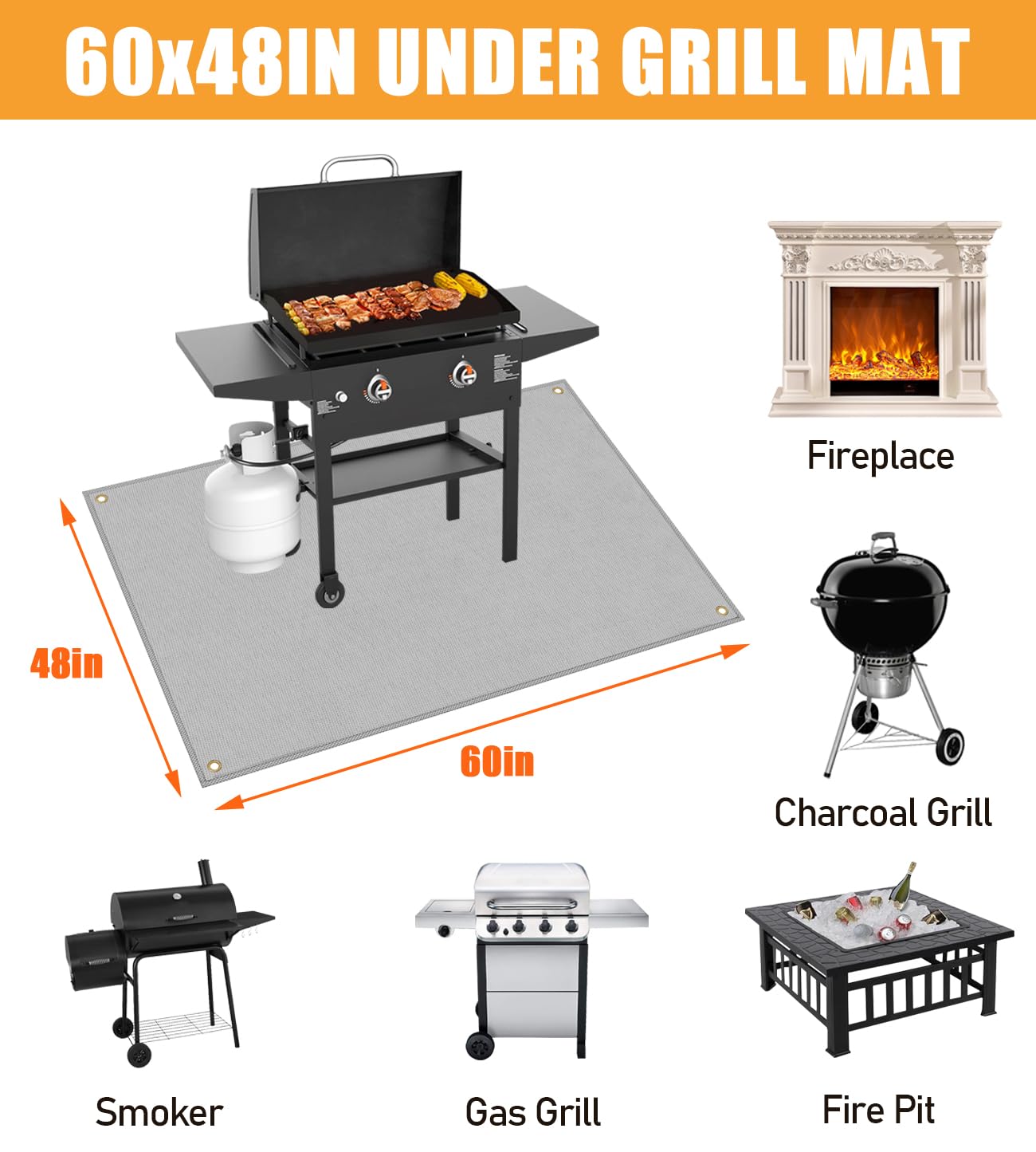 121,9 X 76,2 Cm Untergrillmatten Für Outdoor-Grill, Feuerfeste Deck