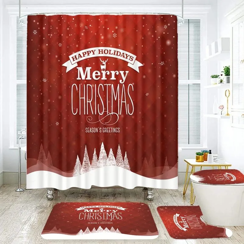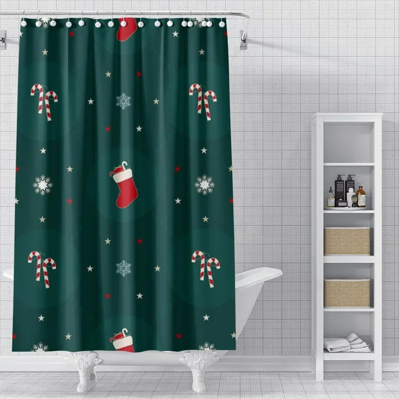 Merry Christmas Duschvorhang, Zwergen-Thema, Urlaubsvorhang Für Badezimmer, Weihnachtsdekoration, Gemütlich, Wasserdicht, Stoff, Duschvorhang-Set Mit Haken, 183 X 190 Cm