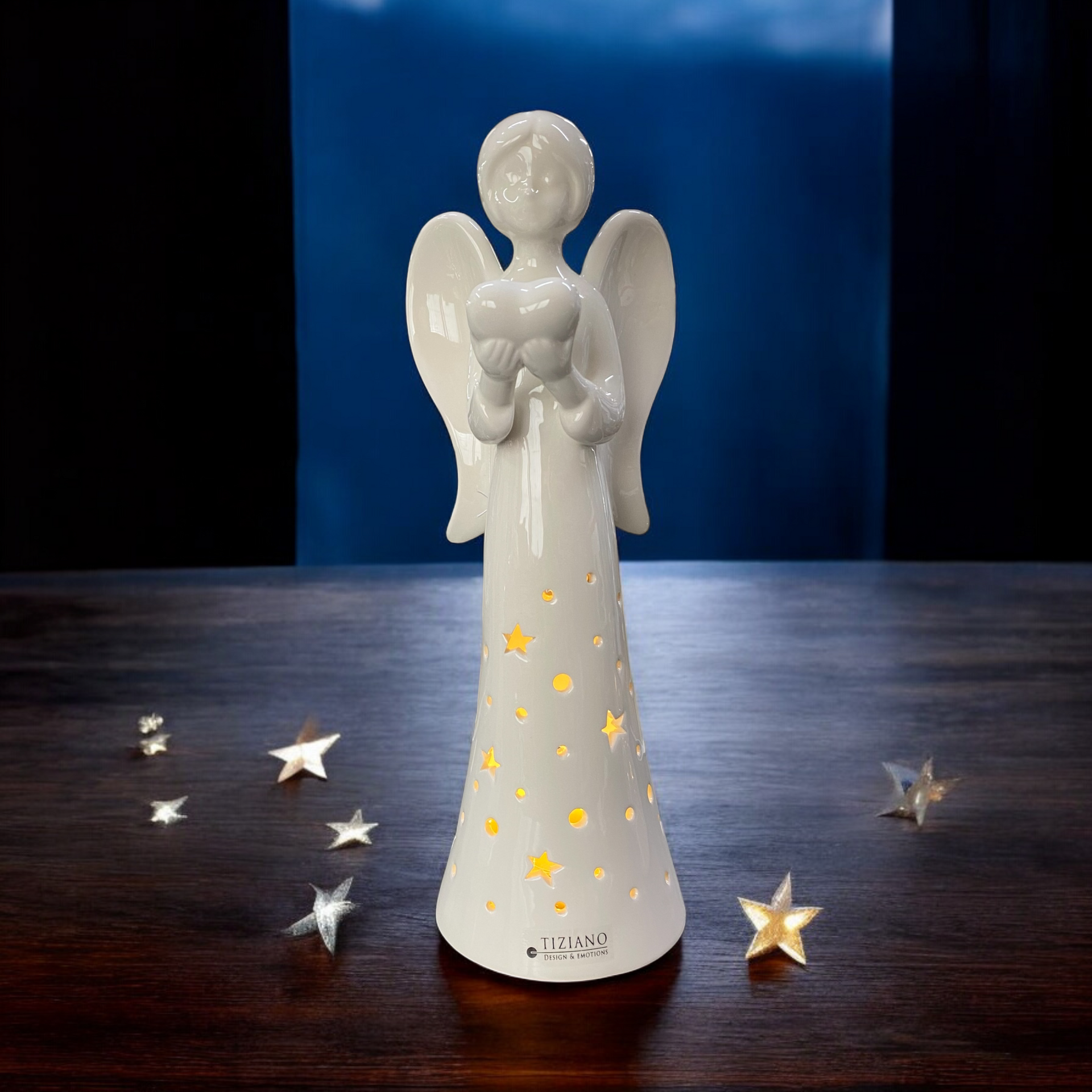 LED Belechtung: Im Inneren der Keramikfigur befinden sich LEDs und Batterien, die LED-Beleuchtung an der Unterseite der Figur können Sie einfach einschalten. Teelichthalter Engel bei : Top-Marken Günstige Preise Riesen Auswahl - Jetzt super Angebote entdecken und online kaufen Paket: 1* Angel Keramik mit LED Dieser bezaubernde Teelichthalter ist ein wunderschönes Dekorationsstück für Ihr Zuhause. finehomegarden Engelfigur Engel mit LED mit Timer Porzellan weiß H12cm+H18cm Weihnachten (1 St), 2Größen Schutzengel Figur aus Porzellan: Die angel Figuren eignen sich hervorragend als stimmungsvolle weihnachtsdeko figuren für die Adventszeit und Weihnachten und verleihen Ihrem Wohnraum ein himmlisches Ambiente. Herrnhuter Sterne Dekorativer Deko-Engel Weihnachtsengel Greta Weiß H40cm Teelichthalter Weihnachten Dieser leuchtende weiße Engel wird Ihrer Weihnachtsdekoration eine Note von Sanftheit und Gelassenheit verleihen. Produktdetails: Marke: Tiziano Serienname: Victoria Material: Keramik crème-weiß Größe: 21 cm, 25 cm, 29 cm, 35 cm oder 45 cm Höhe Unser Tipp: Kombinieren Sie diese Teelichthalter Engel mit Schale mit weiteren Deko Engeln & Schutzengeln und Teelichthaltern. Das weiße, durchbrochene Design lässt das Kerzenlicht sanft hindurchschimmern und zaubert eine gemütliche Stimmung. Größe: Höhe: 125mm; Basisdurchmesser: 65mm. Teelichthalter Design: Diese Engelsfigur ist auch ein Teelichthalter und kann im kalten Winter warmes Licht spenden. LED Belechtung: Im Inneren der Keramikfigur befinden sich LEDs und Batterien, die LED-Beleuchtung an der Unterseite der Figur können Sie einfach einschalten Teelichthalter Design: Diese Engelsfigur ist auch ein Teelichthalter und kann im kalten Winter warmes Licht spenden. Hinweis: Im Lieferumfang ist kein Teelicht und zusätzliche Dekoration enthalten.