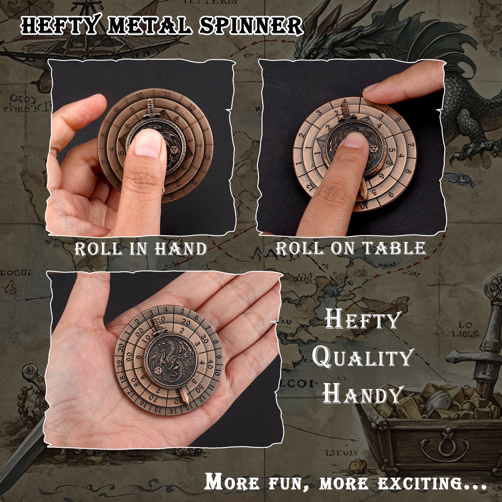 Sein einzigartiges Design und seine Funktionalität machen es zu einem beeindruckenden und herausragenden Werk. Dieses 7-in-1-Roulette-Würfel-Set aus Metall zeichnet sich durch seine innovative Kombination aus Kompass und rollenden Würfeln aus und bietet eine unvergleichliche stimulierende Erfahrung. Diese hochwertigen, facettenreichen Metallwürfel verleihen jedem Spiel Spannung und Genauigkeit. Spinner DND Würfel Set, 7 in 1 Fingertip Gyro Metallic DND Würfel, DND Starter Set, Rogue Dice Spinner für DND Würfel Set, D&D Geschenke mit Geschenkbox, Rollenspiel Brettspiel Zubehör, Bronze 7-in-1 Würfel Fingerspitzen Kreisel Würfel Exklusiver DND Würfel Diese hochwertigen, facettenreichen Metallwürfel verleihen jedem Spiel Spannung und Genauigkeit Die stabile Metallstruktur bietet nicht nur ein zufriedenstellendes Gewicht. Die Zahlen sind mit Zahlen graviert, die verschiedene Würfel-Sets darstellen, einschließlich D20, D10, D8, D12, D6 und D4., Jede Seite der Gravur ist mit drei Zeilen von Zahlen für einfache Navigation und genaue Ergebnisse. Multifunktional: Jede Seite der Gravur ist mit drei Zeilen von Zahlen für einfache Navigation und genaue Ergebnisse. Einzigartiges Design der Zungenschatztruhe: Dieses 7-in-1-Roulette-Würfel-Set aus Metall zeichnet sich durch seine innovative Kombination aus Kompass und rollenden Würfeln aus und bietet eine unvergleichliche stimulierende Erfahrung. Dieses 7 in 1 Metallwürfel Set ist mit einem Roulette Würfel Rotator ausgestattet, der innovativ einen Kompass und rollende Würfel kombiniert, mit einem coolen Aussehen und Gefühl der Innenstadt Ausrüstung und bietet ein unvergleichliches stimulierendes Erlebnis 【Ideales Geschenk】 Der Metall-DND-Würfelkreisel ist das perfekte Geschenk für treue Gamer und Sammler. Produktbeschreibungen Einzigartiges Design der Zungenschatztruhe. Ob Geburtstag, Urlaub oder besondere Anlässe, dieser Rotator wird jedem Gaming-Enthusiasten sicher Freude und Spannung bereiten. Dice Spinner Metall Würfel Set 7pcs Polyeder D20 Dungeons & Dragons DND RPG Rollenspiel Würfe D&d Würfel Set Dieser Spinner wird jedem Gaming-Enthusiasten Freude und Spannung bereiten
