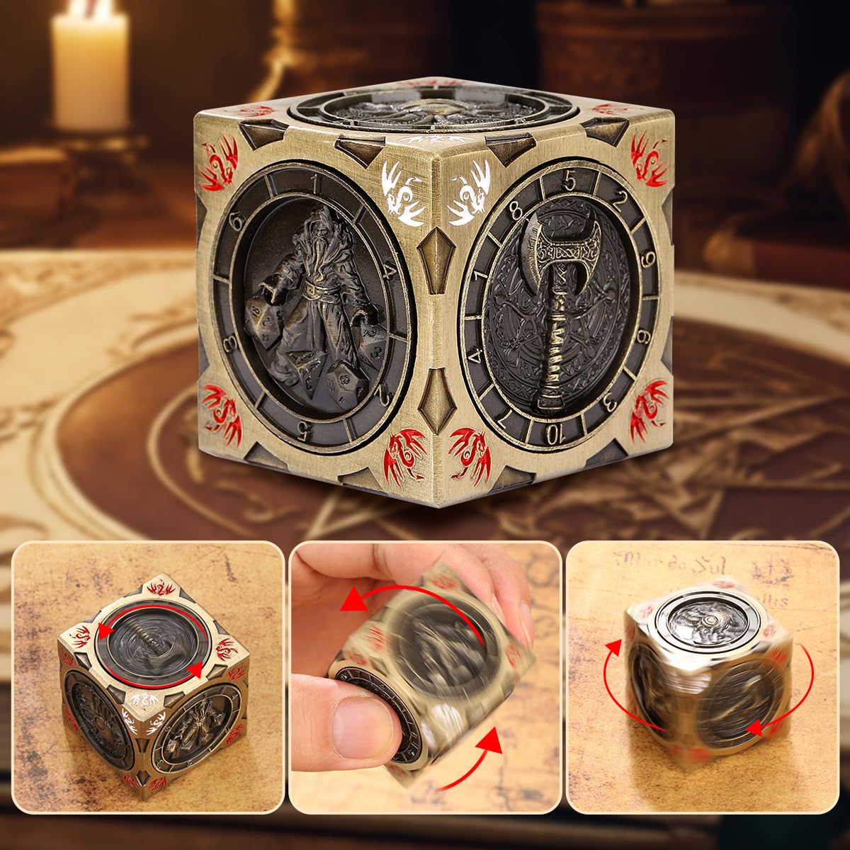 Sein einzigartiges Design und seine Funktionalität machen es zu einem beeindruckenden und herausragenden Werk. Dieses 7-in-1-Roulette-Würfel-Set aus Metall zeichnet sich durch seine innovative Kombination aus Kompass und rollenden Würfeln aus und bietet eine unvergleichliche stimulierende Erfahrung. Diese hochwertigen, facettenreichen Metallwürfel verleihen jedem Spiel Spannung und Genauigkeit. Spinner DND Würfel Set, 7 in 1 Fingertip Gyro Metallic DND Würfel, DND Starter Set, Rogue Dice Spinner für DND Würfel Set, D&D Geschenke mit Geschenkbox, Rollenspiel Brettspiel Zubehör, Bronze 7-in-1 Würfel Fingerspitzen Kreisel Würfel Exklusiver DND Würfel Diese hochwertigen, facettenreichen Metallwürfel verleihen jedem Spiel Spannung und Genauigkeit Die stabile Metallstruktur bietet nicht nur ein zufriedenstellendes Gewicht. Die Zahlen sind mit Zahlen graviert, die verschiedene Würfel-Sets darstellen, einschließlich D20, D10, D8, D12, D6 und D4., Jede Seite der Gravur ist mit drei Zeilen von Zahlen für einfache Navigation und genaue Ergebnisse. Multifunktional: Jede Seite der Gravur ist mit drei Zeilen von Zahlen für einfache Navigation und genaue Ergebnisse. Einzigartiges Design der Zungenschatztruhe: Dieses 7-in-1-Roulette-Würfel-Set aus Metall zeichnet sich durch seine innovative Kombination aus Kompass und rollenden Würfeln aus und bietet eine unvergleichliche stimulierende Erfahrung. Dieses 7 in 1 Metallwürfel Set ist mit einem Roulette Würfel Rotator ausgestattet, der innovativ einen Kompass und rollende Würfel kombiniert, mit einem coolen Aussehen und Gefühl der Innenstadt Ausrüstung und bietet ein unvergleichliches stimulierendes Erlebnis 【Ideales Geschenk】 Der Metall-DND-Würfelkreisel ist das perfekte Geschenk für treue Gamer und Sammler. Produktbeschreibungen Einzigartiges Design der Zungenschatztruhe. Ob Geburtstag, Urlaub oder besondere Anlässe, dieser Rotator wird jedem Gaming-Enthusiasten sicher Freude und Spannung bereiten. Dice Spinner Metall Würfel Set 7pcs Polyeder D20 Dungeons & Dragons DND RPG Rollenspiel Würfe D&d Würfel Set Dieser Spinner wird jedem Gaming-Enthusiasten Freude und Spannung bereiten