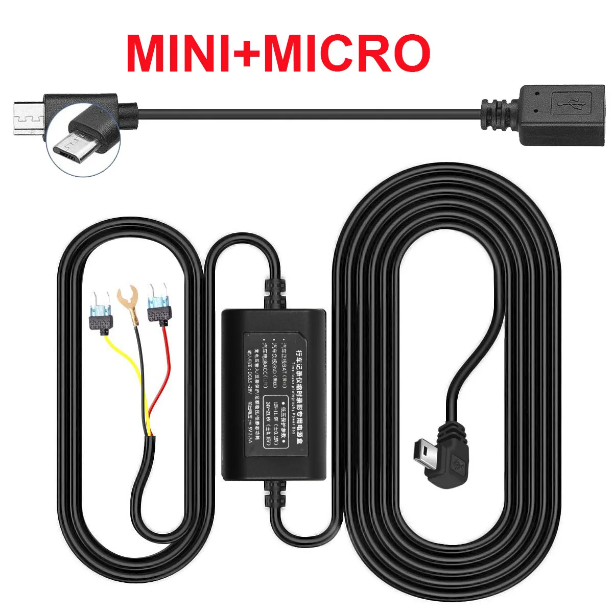 Dash Cam 2-adriges Hardwire-Kit Mini-USB Mit LED-Bildschirm, 12V-32V Bis 5V 3a Einstellbarer Nierspannung Schutz 24h Park überwachung