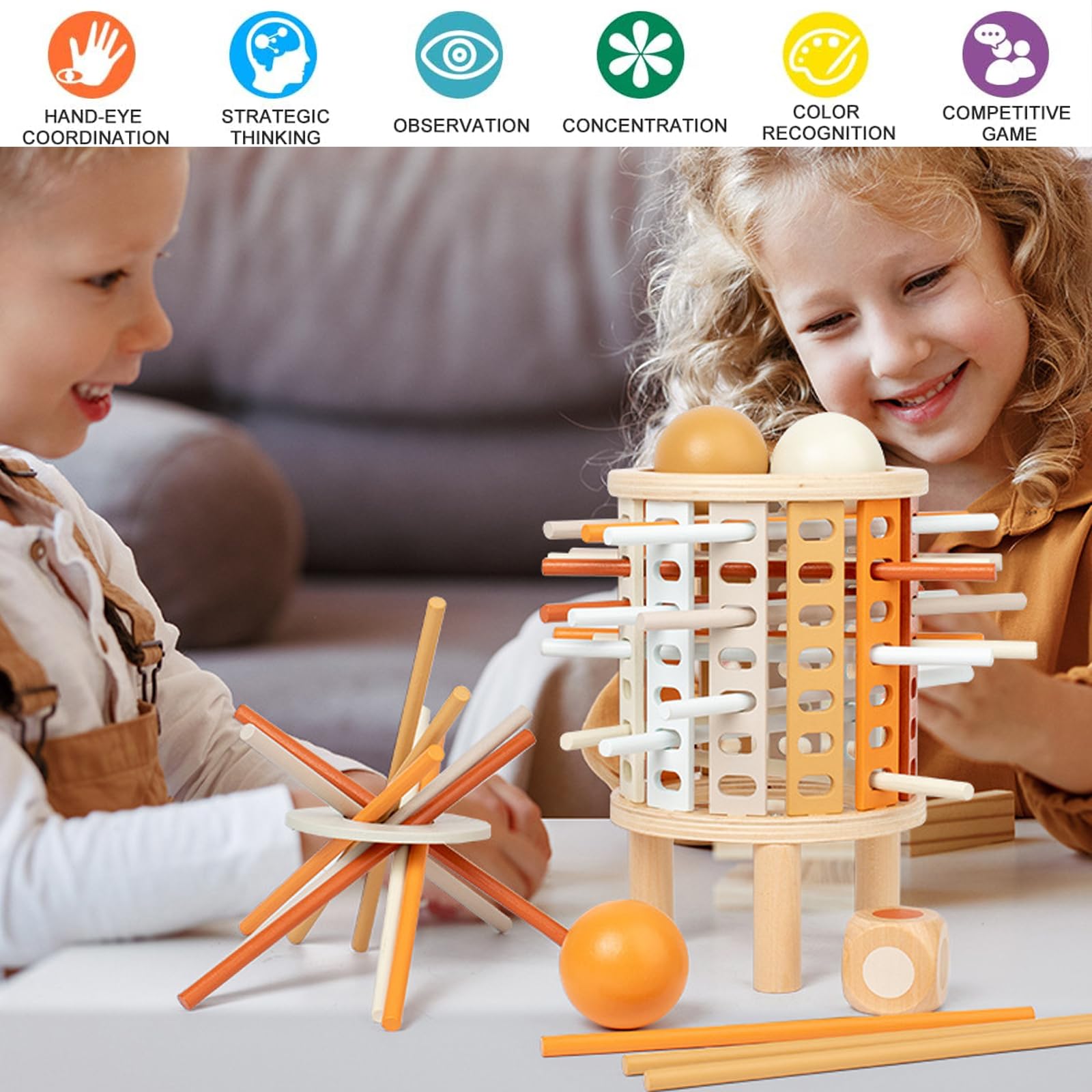 Vicloon Montessori Spiel Brettspiel Aus Holz, 36 Stück Bunte Holzstäbchen Spiele Würfelspiel Mathe & Feinmotorik Spielzeug, Farblernturm, Kinder Familienspiel, Kinderspiele Reisespiel Ab 3 Jahren