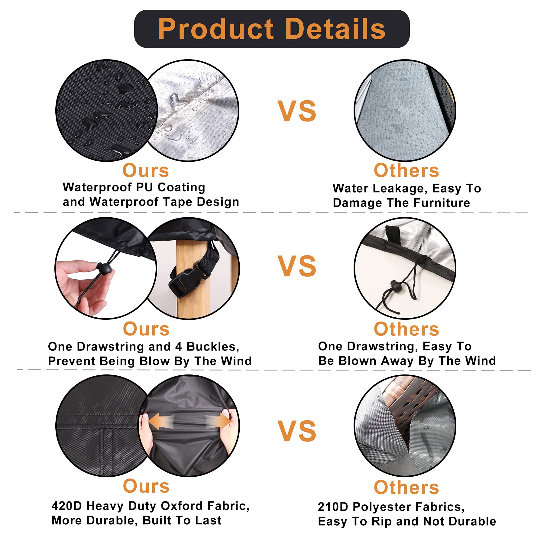 Schutzhülle für Möbel eignet sich für alle Arten von Gartenmöbeln, Stühlen, Bänken, Couchtischen, Schreibtischen, Gartenstühlen, Gartenmöbeln, Billardtischen, Aufbewahrungshockern im Freien, Rattanwürfelmöbelsets usw. Kann Ihre Möbel gut schützen. Sofa Abdeckung Gartenmöbel-Abdeckung, Möbelabdeckung, Robuster 420D-Oxford-Stoff Sofa Groß 🌴【Starker Schutz】-Wasserdichten Möbelabdeckung ist eine ideale Anti-Ultraviolett-Abdeckung. Schützen Sie Ihre Möbel vor Kratzern, Feuchtigkeit, Staub, Ausbleichen, UV-Strahlung, Outdoor Möbelbezug Mit Belüftungslöchern hat auch die Eigenschaften von Schimmel, Kälte, Korrosionsschutz, UV-Schutz, leicht zu reinigen, hohe Temperaturbeständigkeit und reißt an Schneetagen nicht , etc. Diese Ihnen zusammen mit den von uns mitgelieferten Halteseilen, es an den Möbeln zu befestigen, und mein Produkt hat auch eine Befestigungsschnalle, um dies auch an den windigsten Tagen zu gewährleisten! 🌴【Winddichte Möbelhülle】-Schutzhülle gartenmöbel verfügt über einen Klettverschluss-Kordelzug, der hilft, Abdeckung geeignet fest an Ihren Objekten zu befestigen. Lassen Sie Ihre Möbel länger und haltbarer leben. IUCUHE Gartenmöbel Abdeckung Winterfest,Schutzhülle Gartenmöbel Winterfest 390 L x 305 B x 125 H cm 420D Oxford Gewebe Garten Lounge Abdeckung,Schutzplane Wasserdicht Qartenmöbel Staubfest Winddichte Bei Fragen können Sie sich natürlich vor dem Kauf an uns wenden Wir werden Ihnen innerhalb von 24 Stunden eine zufriedenstellende Antwort geben. Die wasserdichte Lounge-Abdeckung mit innerer PVC-Beschichtung hält Feuchtigkeit fern und verhindert zudem Stockflecken. Die Gartentisch-Abdeckung mit integrierten Ösen kann einfach befestigt werden und ist so auch bei kräftigen Gewittern und Wind gut geschützt Umweltfreundlich, es kann bieten mehrstufige Verteidigung auch in rauen Umgebungen. Starker Schutz]-Wasserdichten Möbelabdeckung ist eine ideale Anti-Ultraviolett-Abdeckung 🌴【Hochwertiges Material】-Schutzplane besteht aus dickem 420D Oxford-Stoffgewebe, das eine starke Zähigkeit, Reißfestigkeit und Haltbarkeit aufweist und eine PU-Beschichtung hat, eine gute Wasserdichtigkeit aufweist ,An den Nähten sind dicke wasserdichte Gummistreifen angebracht, um die Wasserdichtigkeit erheblich zu verbessernund keine schädlichen Chemikalien enthält.