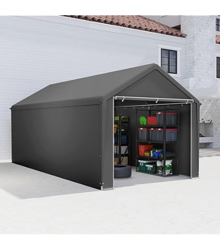 Folgen Sie dem einfachen, leicht verständlichen Handbuch, und zwei Personen können es schnell einrichten. 【Gewölbter Carport】 Das Kuppeldesign unseres Carports verhindert Wasser- und Schneeansammlungen, reduziert die strukturelle Belastung und erhöht die Haltbarkeit. 【Vielseitige Verwendung】Unser 10' x 15' Carport bietet ausreichend Platz zum Abstellen von Autos, LKWs, Motorrädern und mehr. Outsunny Carport, ca. 6 x 3m Partyzelt, höhenverstellbar Autogarage, Autoüberdachung mit 4 Netzfenstern, 4 Türen, für Auto, Lkw, Stahl, Dunkelgrau Seine schlanke, geschwungene Form sieht nicht nur attraktiver aus als ein dreieckiges Dach, sondern sorgt auch für mehr Innenraum und besseren Luftstrom. 【Einfache Installation】 Installieren Sie die tragbare Garage einfach, ohne dass zusätzliche Werkzeuge erforderlich sind. 【2 Rolltüren】Das gewölbte Carport verfügt über zwei aufrollbare Türen vorne und hinten, die geschlossen oder aufgerollt werden können. Einer der vielen verfügbaren Artikel aus unserer Pavillons & GartenlaubenAbteilung hier bei Fruugo! Der Spanner sorgt für eine stabile Struktur, verhindert ein Lösen oder Wackeln Zeltgarage Winterfest Autoüberdachung, Tragbare Garage, Einziehbare Carport-Überdachung, Tragbarer Carport, Robuster, Extragroßer Autogaragenunterstand Für Auto, LKW, Boot, SUV Im Freien, 5,9 X 2,5 X 2 Dachzelt Auto Befolgen Sie die Anweisungen des Herstellers für eine ordnungsgemäße Verankerung. Carport, 3,05x6,09x2,87 m Autoüberdachung, Zeltgarage mit Seine schlanke, geschwungene Form sieht nicht nur attraktiver aus als ein dreieckiges Dach, sondern sorgt auch für mehr Innenraum und einen besseren Luftstrom Es dient auch als Ablagefläche für Brennholz, Rasenmäher und andere Gegenstände, oder als Arbeitsplatz für Reparaturen oder DIY-Projekte. Schließen Sie die Türen, um eine trockene Umgebung im Inneren zu halten, insbesondere bei Regen oder Schnee, während gleichzeitig die Privatsphäre erhöht wird. Elastische Kugelgurte sichern das Baldachin am Rahmen, während Erdspieße das Carport verankert halten, wodurch ein Verschieben oder Kippen bei starkem Wind oder starkem Regen verhindert wird. Viele Modelle, wie das VEVOR Zeltgarage 3x4,5x3,15 m, sind aus reißfesten und UV-beständigen Stoffen gefertigt. Die Qualität spiegelt sich in der langlebigen PE...