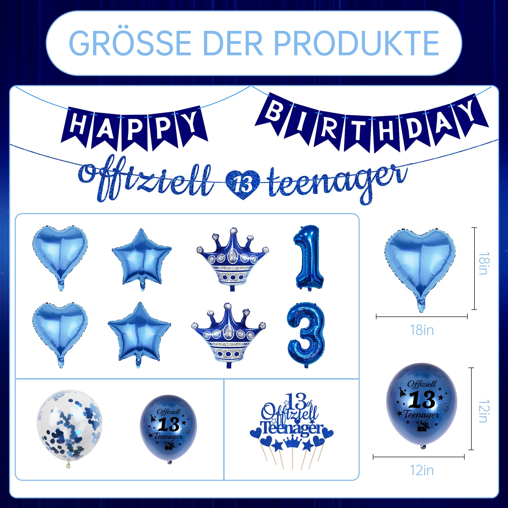 Bng-bng 13. Geburtstag Dekorationen Jungen Blau Happy 13th Birthday