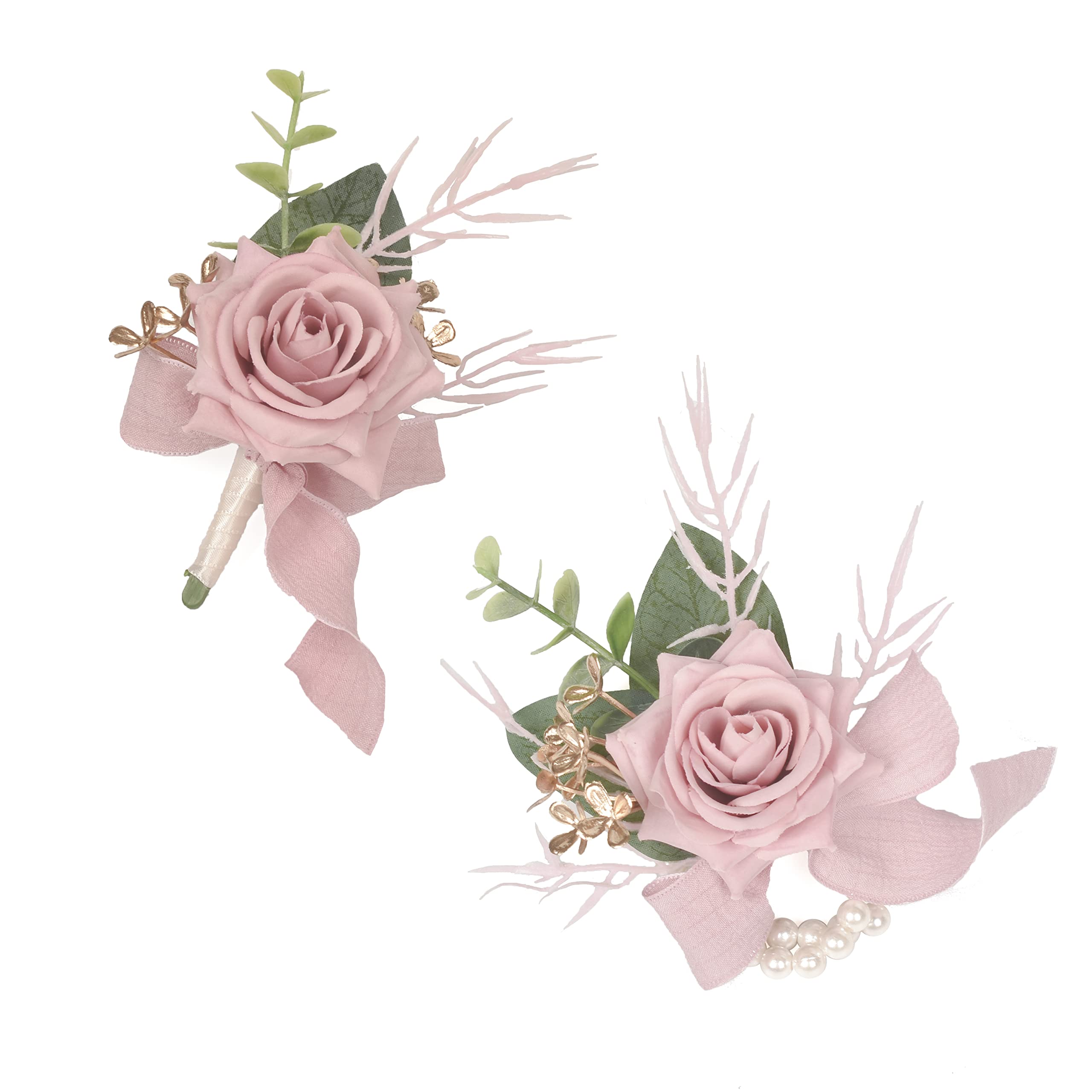 Elfenbein-Rose Handgelenk-Corsage Und Boutonniere-Set, Künstliche