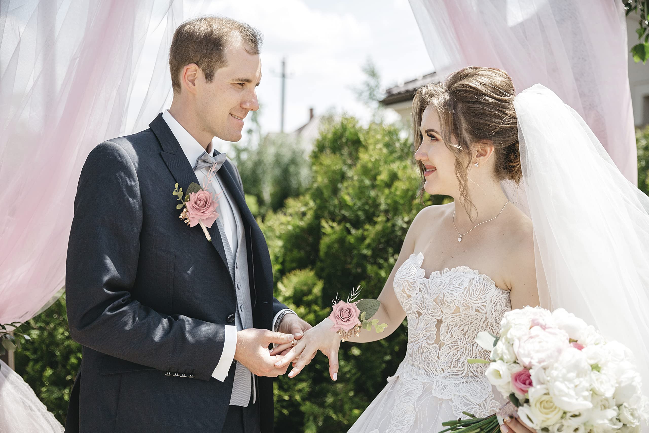 Champagner Handgelenk Corsage und Boutonniere Set Hochzeit Trauzeugen Kämpfe Handgelenk Corsage Band Paket beinhaltet: 6 Stück schöne und natürliche reine weiße Thema Boutonniere für Männer Hochzeit Größe: Boutonniere ist ca. Durchmesser der Rose: 6,3 cm. * Vielseitig einsetzbar: Perfekt für Hochzeiten, formelle 187793002432 Blumen Anzug Elfenbein-Rose Handgelenk-Corsage Und Boutonniere-Set, Künstliche Ansteckblume Anzug Vorgefertigt und praktisch: Die zarten Korsagen und Knopflochblöcke werden nie verwelken und bereit sein, wann immer Sie sie brauchen, damit Sie diese im Voraus bestellen können. Anlässe: perfekt für Bräutigam, Trauzeugen, Braut, Brautjungfern, geeignet für jede Themenhochzeit wie rustikale, boho, französische, ländliche usw. 8,6 cm B x 15,0 cm H. Details: Handgefertigt, Knopflochblöcke haben Pins und Clips auf der Rückseite, verstellbare Perlenarmbänder auf der Rückseite der Korsage, so dass sie für die meisten Größen passen. Alle unbeständigen Kunstelemente sorgen dafür, dass diese Boutonniere nie verwelken oder verblassen. BAIFUMING 2 Stück Set Rose Champagner Hochzeit Handgelenk Corsage und Anstecker Set für Braut, Brautjungfer, Herren, Bräutigam, Hochzeit Künstliche Blumen Accessoires, Abschlussball Anzug korationen (Champagner) Valentinstag bei SHEIN entcken oder Jubiläum, Zeremonie, Festivals, Abschlussballnacht, Strandparty, Schnappschuss, Foto-Requisiten usw. Material: Die Boutonniere bestehen aus reinen weißen Rosen, Orchideen, Candlenut-Blumen, mit Beeren, mintgrünem Gras und Acryl-Kristallen. Material: Das Korsage- und Knopfloch-Set besteht aus echten Seidenrosen, grünen Blättern und weichem Band, gepunktet mit Goldgras, Eukalyptus und anderen Pflanzen. Handgefertigtes Design: Sorgfältig von Hand montiert für zarte und raffinierte Details.Material: Seide, Stoff. Seit Jahren verbindet mich eine große Leidenschaft für Champagner und im Sommer 2020, während eines Besuchs in der Champagnerregion, kam mir die Idee, eine eigene Marke namens „ ins Leben zu rufen