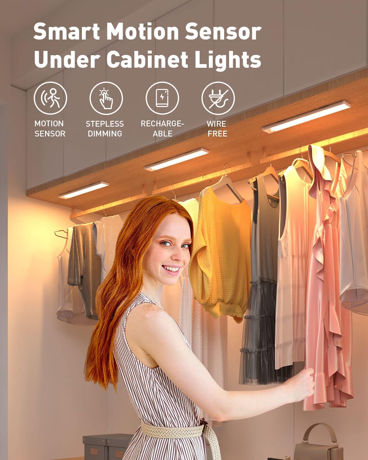 ACICILI Unterbauleuchte Küche Led 30CM, 3 Stück Dimmbar Schrankbeleuchtung Mit Bewegungsmelder, 450Lm USB Aufladbar Led Lichtleiste Für Schlafzimmer, Schrank(Warmweiß