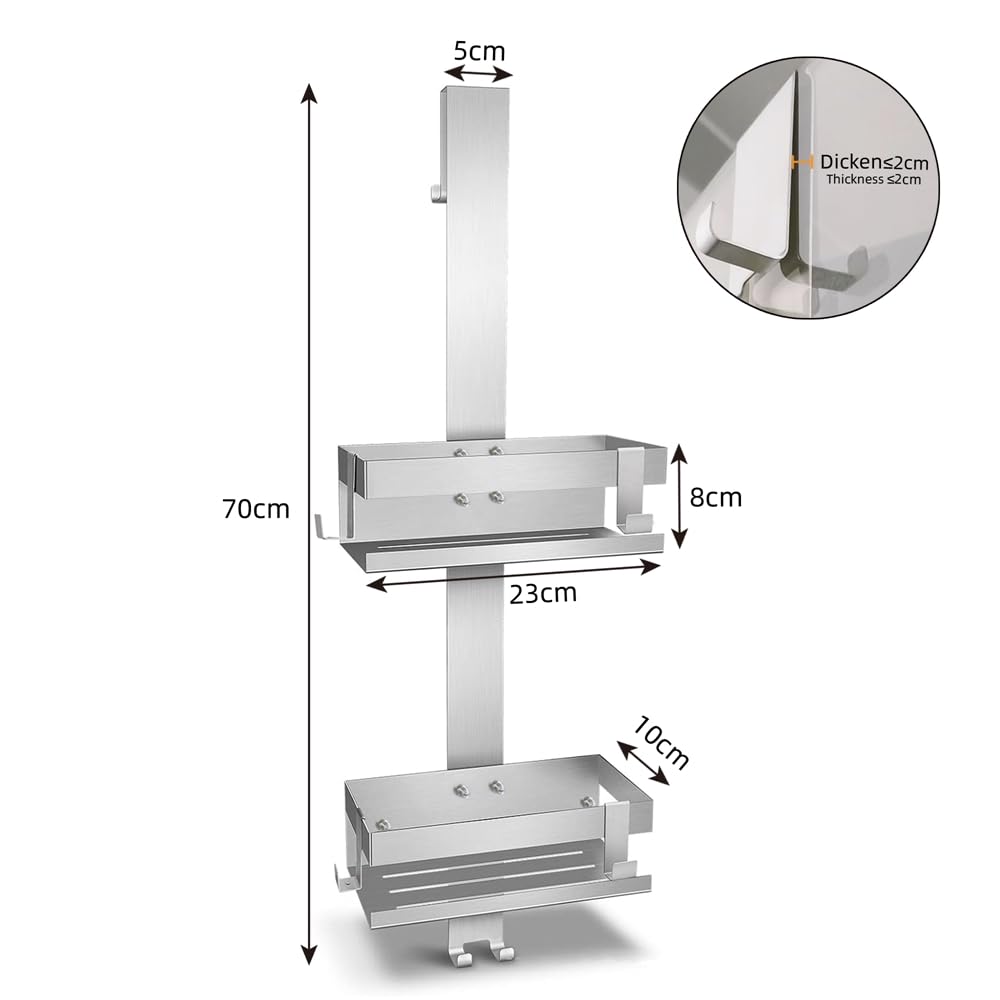 Passform und Kompatibilität: Die Haken der Shampoo-Halterung sind speziell für rahmenlose Glastüren mit einer maximalen Stärke von 20 mm entwickelt worden. Viel Platz für Körper- und Haarpflegeprodukte sowie andere Badezimmerprodukte übersichtlich zu organisieren, ohne zusätzlichen Platz einzunehmen Duschkabinendichtungen und für Duschkabinen aus Glas Melko Duschablage zum Hängen Edelstahl ohne Bohren Duschregal aus Edelstahl Bringen Sie Ordnung und Stil in Ihr Badezimmer mit diesem praktischen Duschregal zum Hängen, das keine Bohrlöcher erfordert. angebrachter Haken (im Inneren) für einen Duschabzieher um Wasserflecken auf dem Duschglas beseitigen zu können, Inkl. Aufhängung ist passend von 4 bis 20 mm (Glasscheiben o., Rahmen) Sus304 Langlebig Und Stark]Der Duschablage besteht aus hochwertigem SUS304-Edelstahl, 100% rostfrei und wasserdicht. Schön, stark und langlebig. [Einfach zu installieren]Der transparente, nicht abfärbende Klebstoff ist haltbarer und stärker als der Saugnapf.Es müssen keine Löcher gebohrt werden und die Wände werden nicht beschädigt.Entfernen Sie einfach die Schutzfolie,Kleber auftragen, Dann das duschregal auf einer glatten oberfläche anbringen Das Duschregal zum Hängen ohne Bohren ist die perfekte Kombination aus Funktionalität, hochwertigem Material und elegantem Design. Kratzerfreie Installation - Inklusive Saugnäpfen, die verhindern, dass Kratzer an der Glasoberfläche entstehen und gleichzeitig sicheren Halt bieten. Im Inneren bieten zusätzliche Haken Platz für einen Duschabzieher, und vier abnehmbare Haken sind perfekt geeignet für kleinere Badaccessoires wie Badekugeln. Schnelle und einfache Installation ohne Bohren 【Sus304 Langlebig Und Stark】Der Duschablage besteht aus hochwertigem SUS304-Edelstahl, 100% rostfrei und wasserdicht. 23 x 70 x 10 cm (B x H x T), Maße je Korb: ca. Alle Vorteile auf einem Blick Dusch Regal Zum Hängen Melko Duschablage Zum Hängen Edelstahl Duschregal Ohne Bohren Duschkorb | Inkl. Glasschutz | Shampoo Halterung Mit Haken Für Duschwand Rahmenlos Glastür Anti-Rost Rasierhalter Handtuchhalter Hängeregal Dusche Saugnäpfe verhindern Kratzer an der Scheibe, Merkmale Maße: ca. Inklusive praktischer Funktionen: 2 Haken an der Rückseite, perfekt als Handtuchhalter oder für Bademäntel | 4 abnehmbare Haken für Badaccessoires wie Badekugeln, Rasierer oder andere Kleinigkeiten | Ein zusätzlicher Haken im Inneren für einen Duschabzieher – ideal, um Wasserflecken auf der Duschglasscheibe zu beseitigen. Duschkörbe helfen dabei, sicher mehr Platz zu schaffen, sodass Sie Badeutensilien in Bad, WC und Küche besser verstauen können. Materialqualität: Robustes Edelstahl, wasserdicht und rostfrei – sorgt für Langlebigkeit und eine pflegeleichte Nutzung. 2 praktische Haken an der Rückseite, die als Handtuchhalter und für Bademäntel genutzt werden können, Inkl. Laimew Duschablage ohne Bohren Badezimmer Organizer, Badregal Es wurde speziell entwickelt, um Funktionalität und Design zu vereinen und bietet eine ideale Lösung für die Aufbewahrung Ihrer Badutensilien. Ideal für jedes Badezimmer, in dem Ordnung und Komfort großgeschrieben werden., Beschreibung Inkl. Funktionale Ausstattung: Auf der Rückseite des Duschregals befinden sich Haken, die ideal als Handtuchhalter genutzt werden können. Die Aufhängung passt sich flexibel an Glasscheiben oder Rahmen mit einer Stärke von 4 bis 20 mm an. Hochwertiges Material: Die Duschanlage besteht aus erstklassigem, strapazierfähigem Edelstahl, der sowohl wasserabweisend als auch korrosionsbeständig ist. Einfache Montage & Stabilität: Keine komplizierte Installation – einfach aufhängen und sofort nutzen. Optimale Belüftung: Integriertes Abflusssystem verhindert Wasseransammlungen und Schimmelbildung, sorgt für schnelle Trocknung und hält Ihr Regal hygienisch sauber. 2 geräumige Körbe für Duschgel, Shampoo und Seife usw., Inkl. Die hängende Halterung für Glastüren trägt bis zu 7 kg und ist somit äußerst stabil. Entfernen Sie einfach die Schutzfolie,Kleber auftragen, Dann das duschregal auf einer glatten oberfläche anbringen.