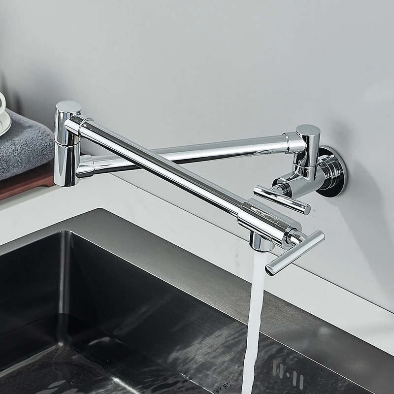 Cinwiny Topffüller, Wasserhahn, Wandmontage, Mattschwarz, Küche, Restaurant, Spüle, Dehnbar, Kommerzielle Armatur Mit Klappbarem Doppelgelenk, Schwenkarm, Einzelloch, Zwei Griffe, NPT-Edelstahl