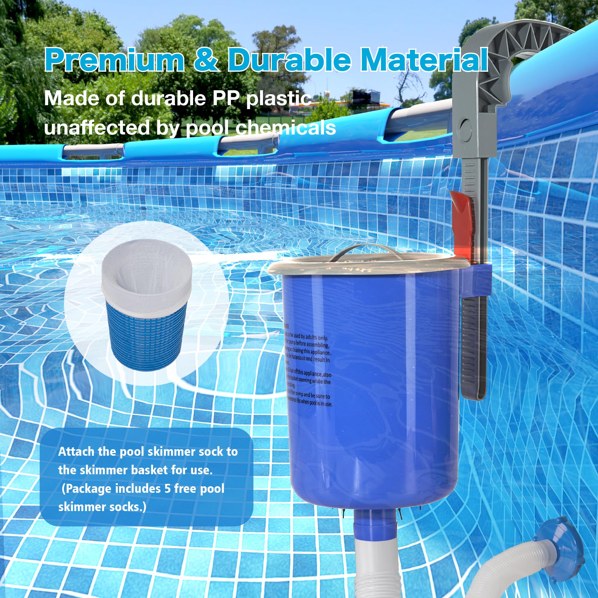 EINFACH ZU REINIGEN - Im Inneren des Pool-Skimmersystems ist ein abnehmbarer Skimmerkorb installiert, mit einem leichten Zug kann der Müll mit den Filtersocken schnell gereinigt und ausgegossen werden., HINWEIS:1., Für beste Skimming-Ergebnisse ist eine Filterpumpe mit einer Mindestdurchflussmenge von 800 gph (3., 028 L/h) erforderlich., 2., Die Außenrandlippe des Skimmerkorbs sollte immer etwas über dem Wasserstand des Pools ausgerichtet sein., 3., Um zu verhindern, dass der Kunststoffclip bricht, ziehen Sie die Klemme bitte nicht zu fest an. Aufstellbarer Pool | Familien-Pool Gartenpool Set selbstaufbauend mit Automatischer oberirdischer Pool-Skimmer mit 5 Premium-Skimmersocken Skimmersocken helfen dabei, den Filter effizient laufen zu lassen. 【Einfach zu installieren】 Die automatischen Pool-Skimmer-Teile sind mit einer detaillierten Installationsanleitung ausgestattet. Wenn Sie während des Gebrauchs auf Probleme stoßen, können Sie uns jederzeit kontaktieren. Bestway Oberflächenskimmer Flowclear Pool Skimmer Oberflächenskimmer Pool Intex Oberflächenskimmer Oberflächensauger Skimmer Für Pool Einlaufdüse Pool Oberflächenskimmer Unzureichender Durchfluss ist die Hauptursache für schlechte Leistung. Dlicsy 5 Stück Pool Skier Socken it 80 Stück Pool PH Teststreifen...