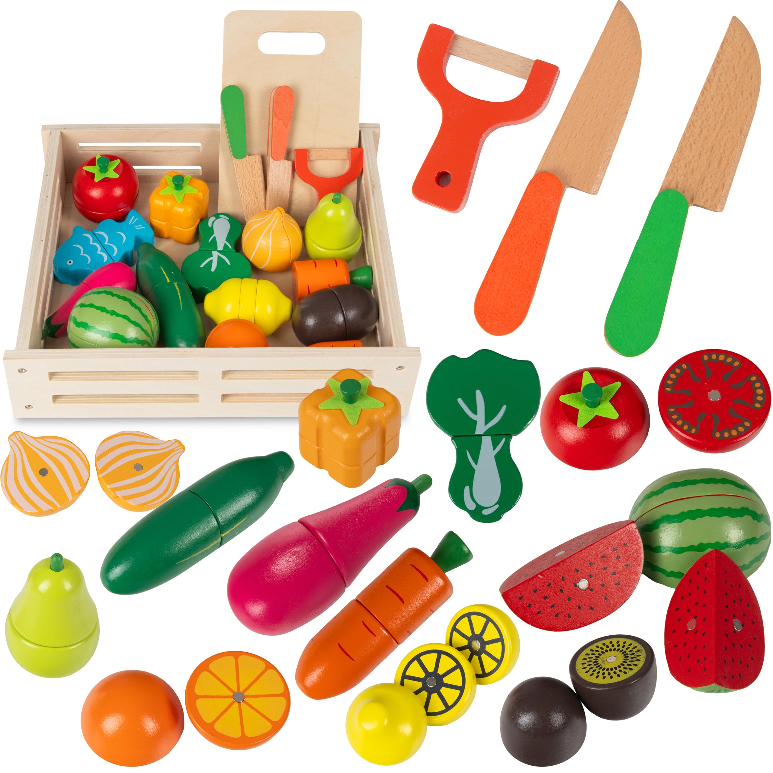 BAKHK Küchenspielzeug Holz Für Kinder Obst Gemüsen Spielzeug, 34-TLG