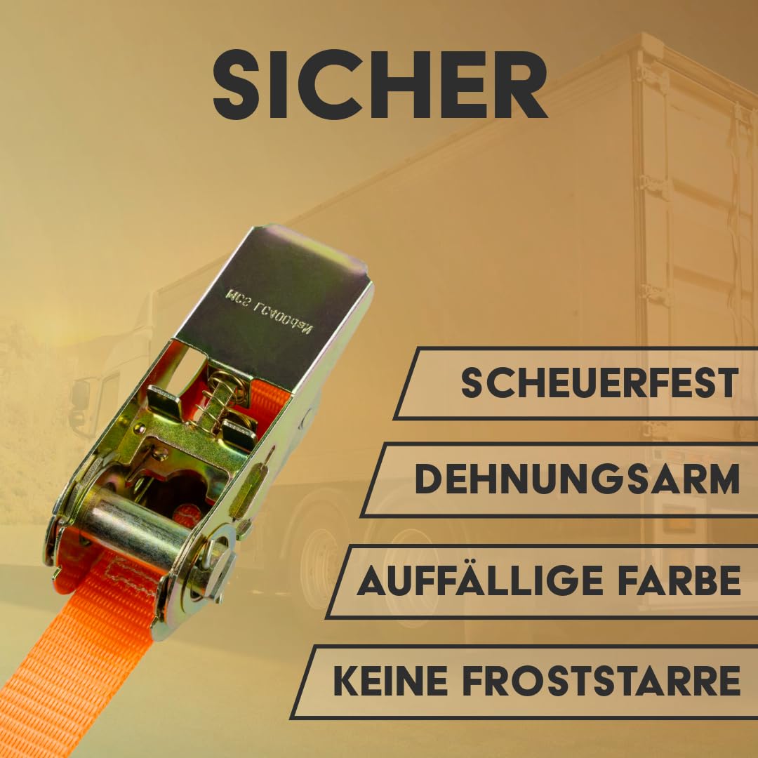 Hohe Sichtbarkeit gelb – langlebige Spanngurte in Industriequalität mit verstärkten Kanten, um Verschleiß zu reduzieren. Entspricht den Richtlinien der US DOT und Commercial Safety Vehicle Alliance. 2,5 cm x 3,8 m Doppel-J-Haken – Ratschengurte, strapazierfähig., 3,0 kg Arbeitslastgrenze 20., 000 Bruchfestigkeit 10,2 cm breite LKW-Gurte verstellbar bis zu 9 m Länge für kleine oder große Lasten. Spanngurt Set JAKAGO 4 Stück 800kg 5 M Spanngurte Mit Ratsche,Zurrgurte Und Ratsche Zurrgurte Mit Ratsche Sichern Sie Lasten während des Transports und führen Sie sicher Frachtkontrollaufgaben mit Xpose Safety Ratschengurten aus, erhältlich in einer Vielzahl von Größen. Entworfen mit verzinkten, korrosionsbeständigen, verzinkten Stahlbeschlägen und Ratschen. Entworfen mit verzinkten, korrosionsbeständigen, verzinkten Stahlbeschlägen. Beim Transport wird die Fracht mit Spanngurten vor ungewolltem verrutschen während der Fahrt verhindert. Das Spanngurt-Set, 8-tlg. ist vom TÜV geprüft und mit dem GS-Sicherheitszeichen ausgezeichnet Hergestellt aus 100 % Polyester-Gurtband, das stark, witterungsbeständig, abriebfest und wenig dehnbar ist. Einfach zu bedienende automatische Verriegelung – diese robusten Spanngurte mit Ratschengurt verfügen über einen automatischen Verriegelungsmechanismus mit einem modernen Schnellhebel, der mit weichem Gummi beschichtet ist, für eine komfortable Bedienung bei jedem Wetter Mit so vielen Längen, Breiten und Hakenstilen zur Auswahl, ist Xpose Safety Ihre One-Stop-Lösung für jede Ladungsgröße oder jedes Fahrzeug, von klein bis groß. Perfekt für Motorrad-Spanngurte, Kajak-Spanngurte und Cargogurte für den Transport von Ausrüstung, Ausrüstung und Maschinen an größeren Fahrzeugen. Doppel-J-Haken sind kompatibel mit D-Ringen, O-Ringen und Anhängerseiten. Stärke und Sicherheit – Spanngurt aus 100 % Polyester-Gurtband für eine ideale Kombination aus Stärke und geringer Dehnung. Mühelose automatische Verriegelung Das moderne Auto-Lock-Ratschensystem schafft einen mechanischen Vorteil beim Anziehen der Last und sorgt dafür, dass alles sicher bleibt. Flache Haken sind kompatibel mit flachen Ankerpunkten wie Pfahltaschen, einer Scheuerleiste oder der Unterseite eines Anhängers. 2 x 2000kg 4m Edelstahl Spanngurt mit Ratsche und Haken 35mm Zurrgurte rostfrei