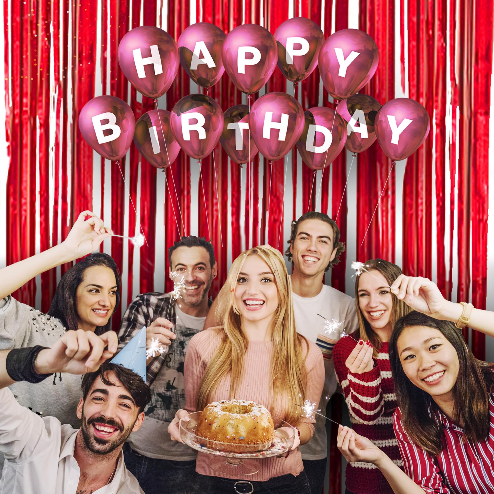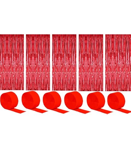 HarParBar Roter Folien-Fransenvorhang, 2 Stück, 9,1 X 1,8 M