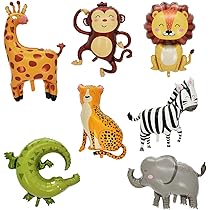 Waldtiere Geburtstag Folienballon 7 Stück Ballon Tiere, Tiger Löwe Affe