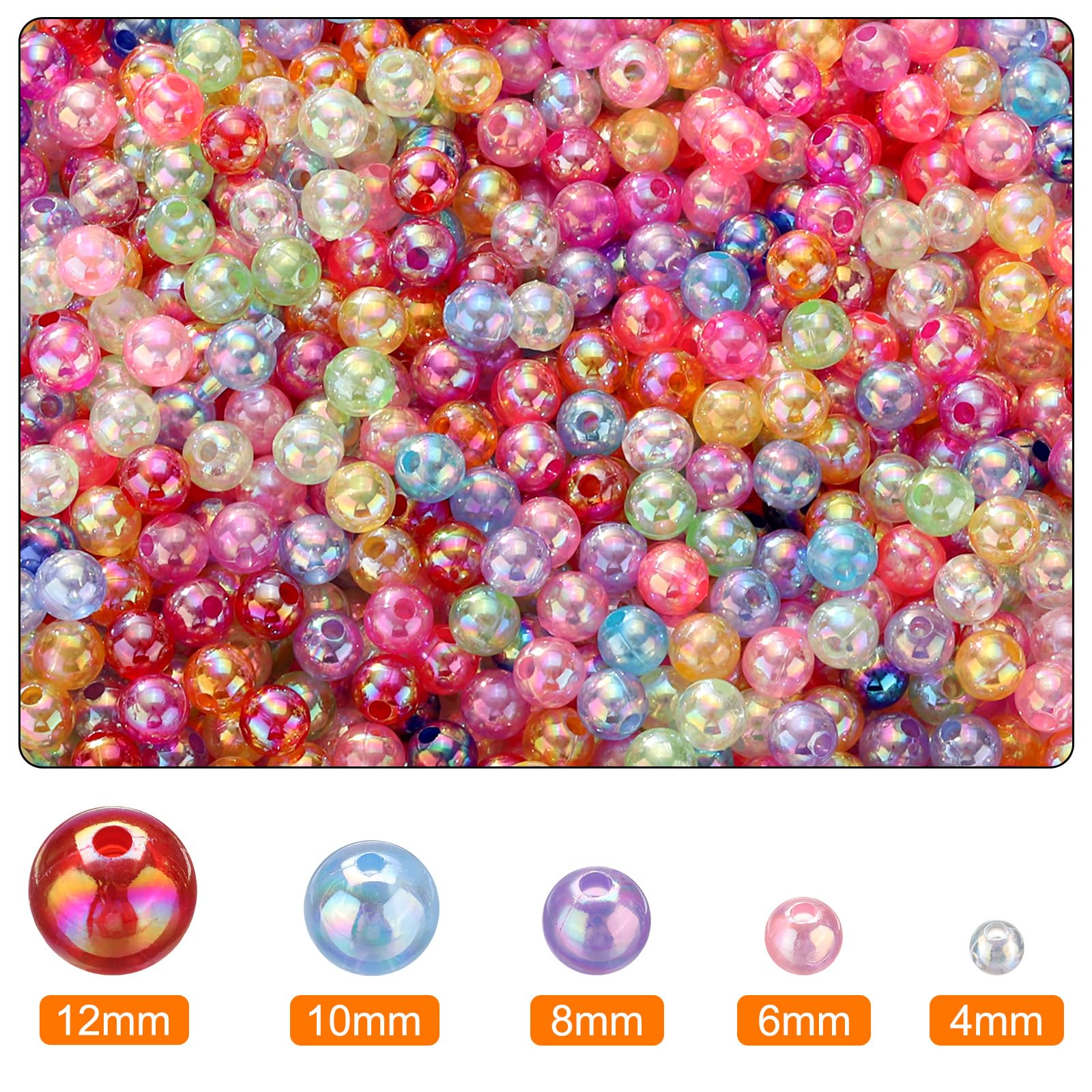 FOGAWA 300 Stück Bunte Perlen Zum Auffädeln Acryl Rund Perlen Multicolorperlen Spacer Beads