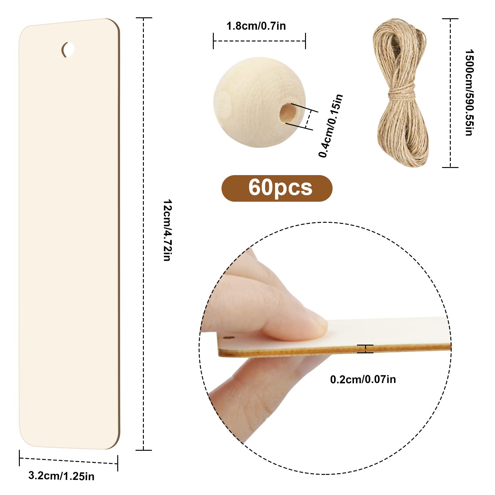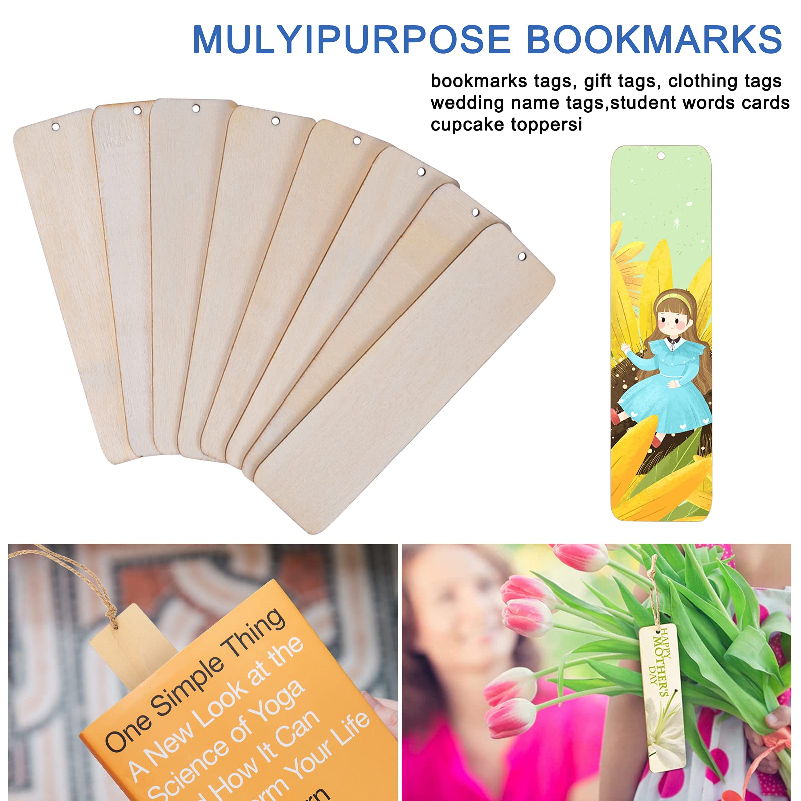 Blanko Lesezeichen Aus Holz, 36 Stück DIY Holz Handwerk Lesezeichen, Rechteckige Leeres Lesezeichen Ornamente Mit Löchern Und Seilen Für Bücher Weihnachten Hochzeit Geburtstag Party Dekoration