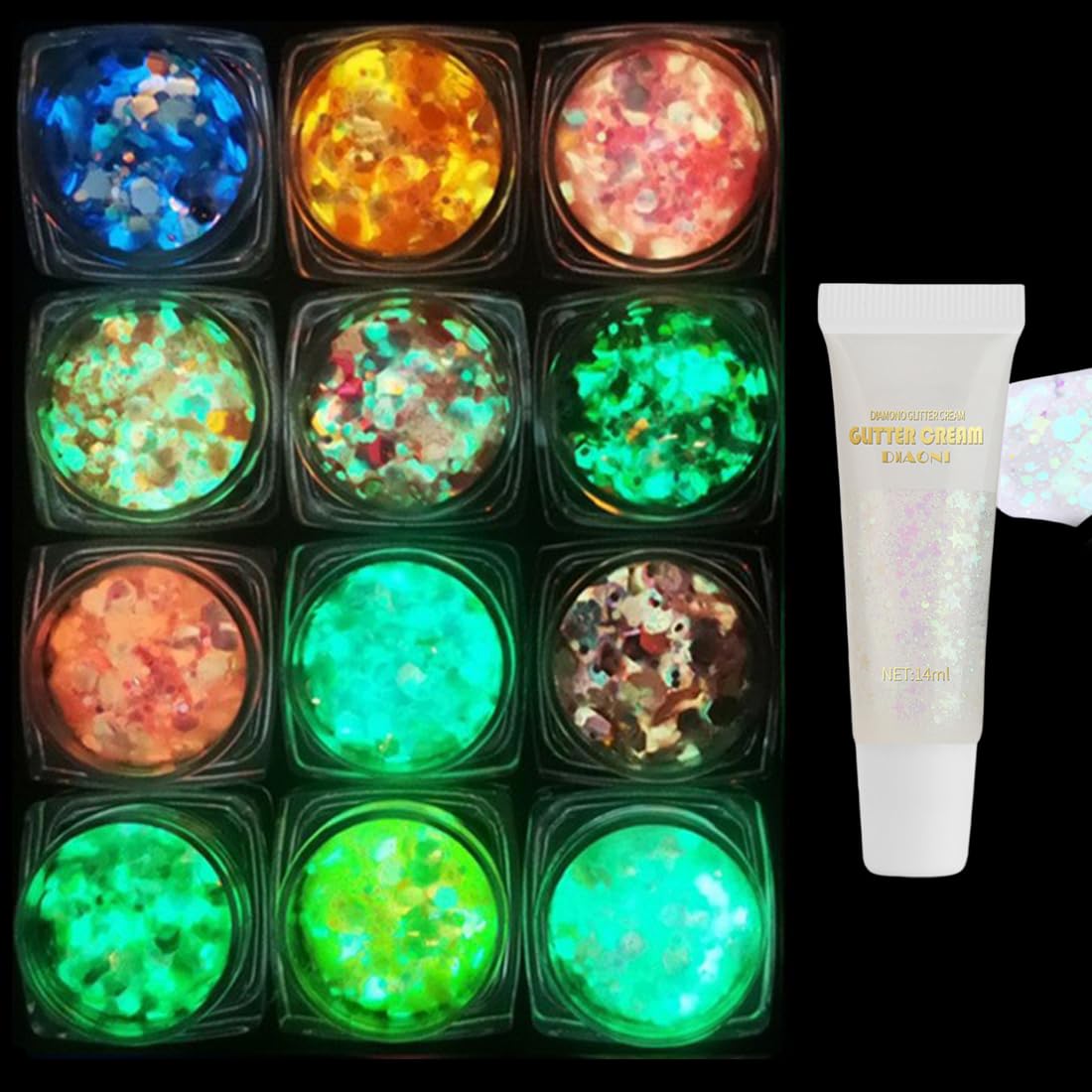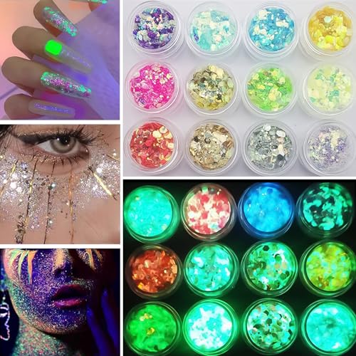 12 Stück Glitzer Gesicht Glitter Festival ZubehöR Für NäGel Nagel Glow