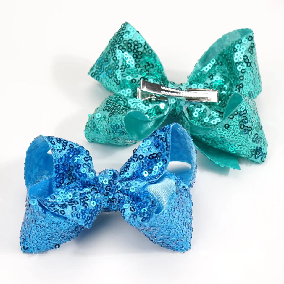 UUYYEO 2 Stück Große Glitzer-Haarschleifen, Glitzernde Pailletten Pferdeschwanz Halter Elastisches Haarband Cheerleading Haarschmuck Fur Frauen Und Madchen Blau