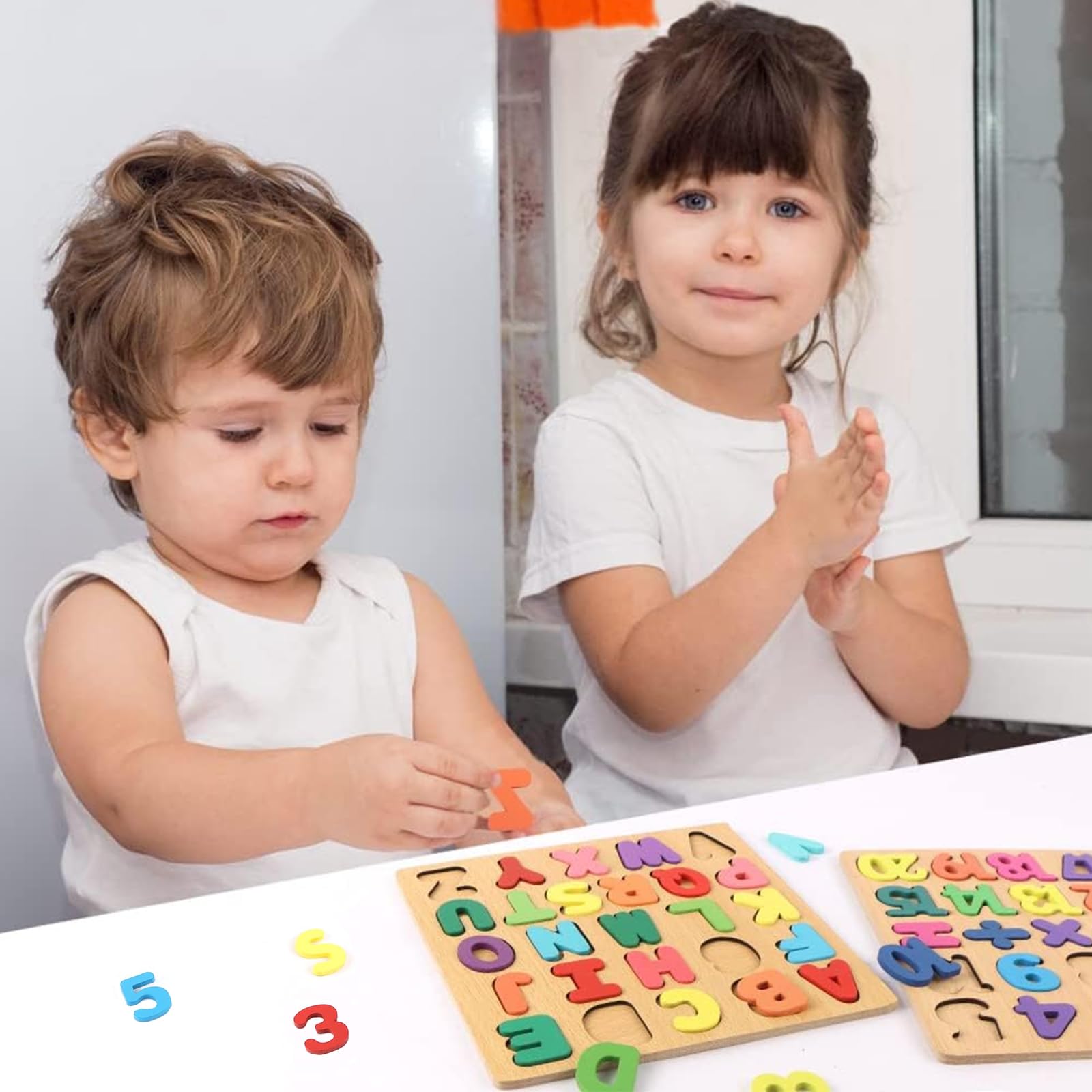 MisFun 2 Stück Holzpuzzle, Kinder Steckpuzzle Aus Holz Greifpuzzle, Holz Puzzle Zahlen Buchstaben Grafiken, Ab 3+ Jahre Kinder Spielzeug Für Frühes Lernen Bildungsspiele Holzpuzzle