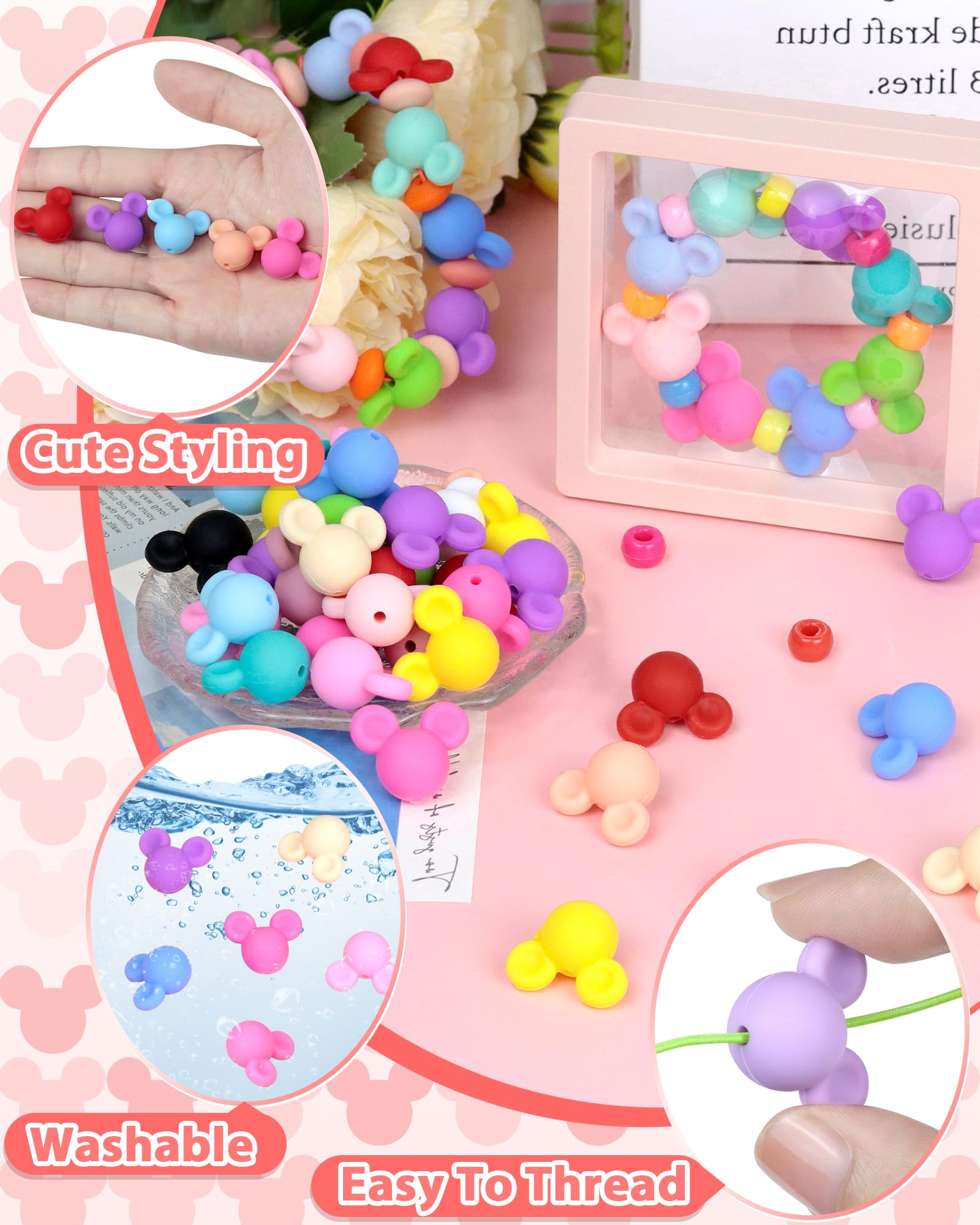 BULK 5-20 Stück KOSTENLOS Versand Möglich Siehe Beschreibung, Silikonperlen Maus Form Für Schmuck Und Bastelprojekte - Weiss