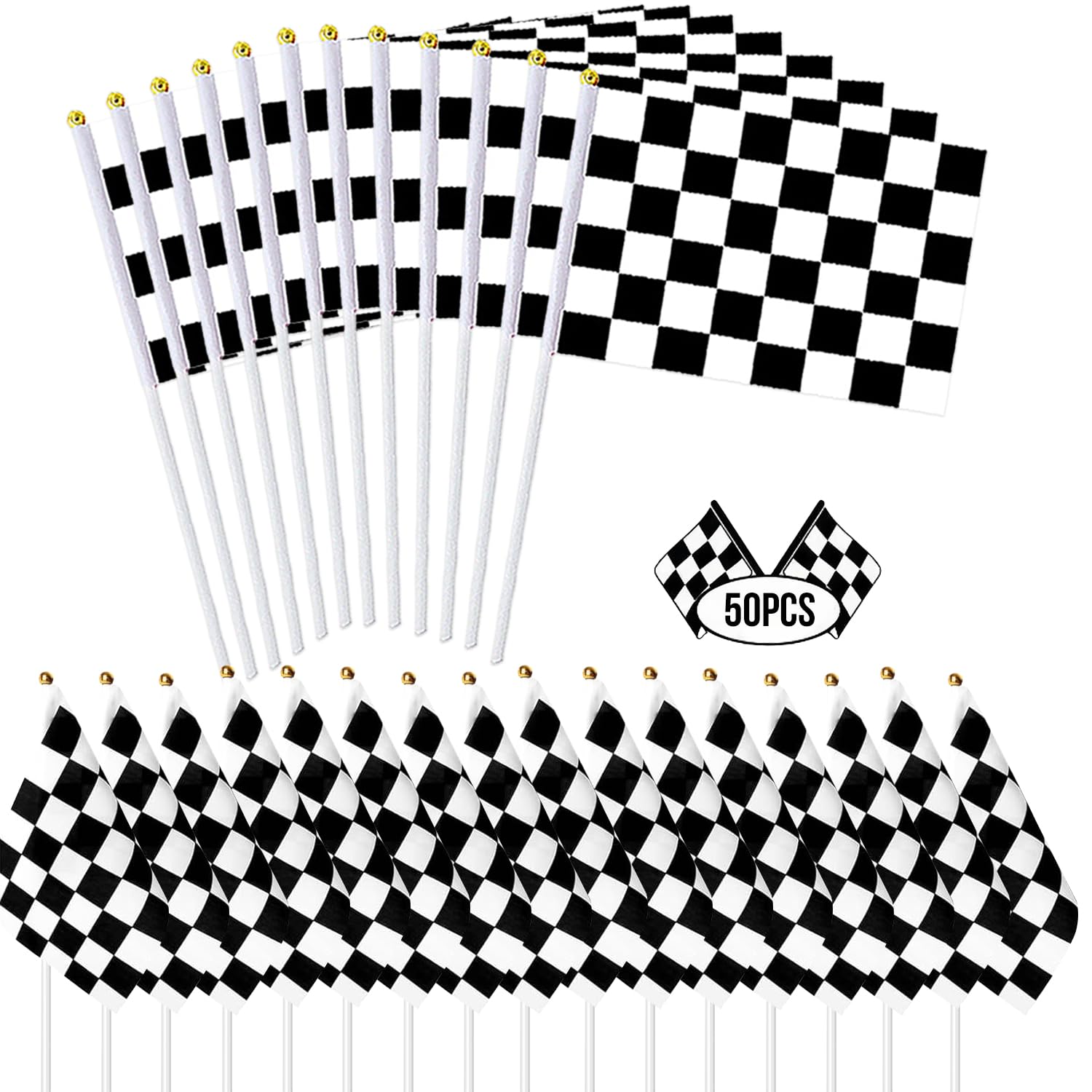 30 Stück Karierte Schwarze Und Weiße Rennstock-Flaggen, Kleine