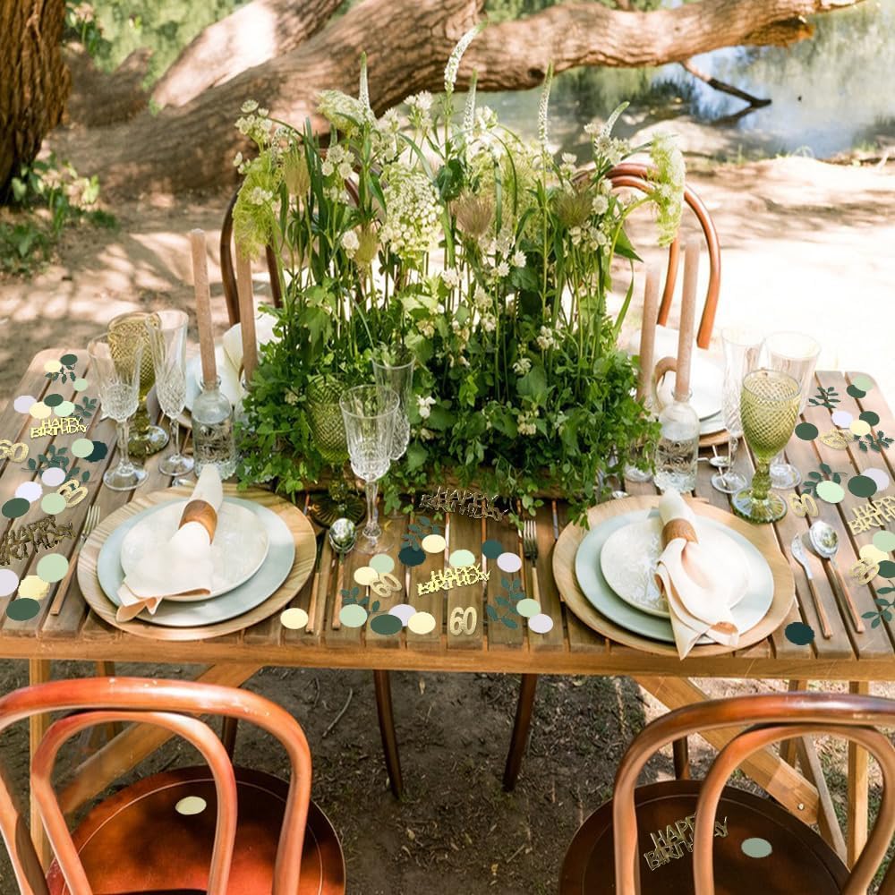 SHUBEIEUMI 100 Stück Konfetti 60 Geburtstag Deko, Metallisch Mit Gemischten Formen In Gold, Grün, Weiß Und Hellgrün, Partydekoration Für Geburtstage, Jubiläen Und Partys