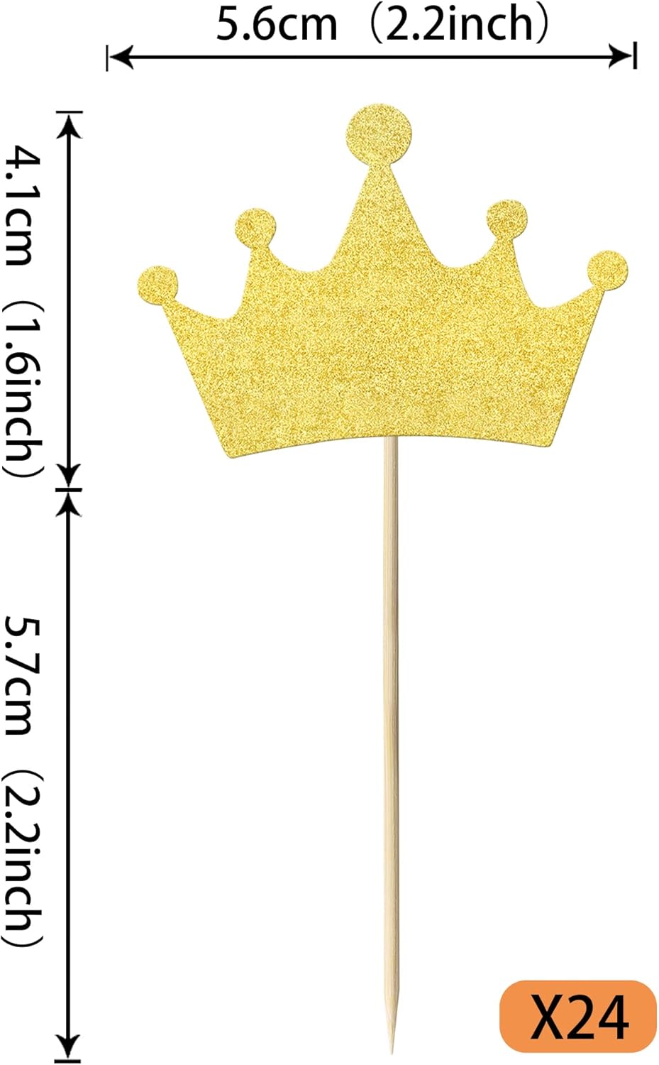 24 Stück Krone Cupcake Topper Prince And Princes Blau Gold Glitzer