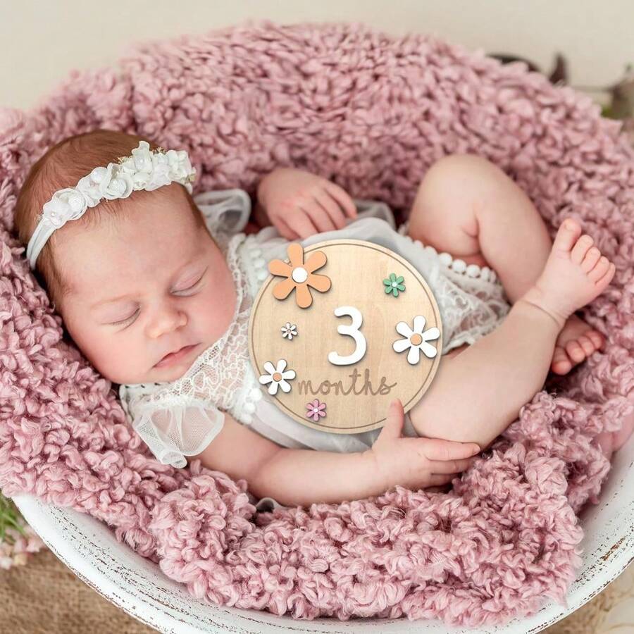6 Stück Monatliche Meilenstein-Karten Für Babys, Schöne Blumenmotive