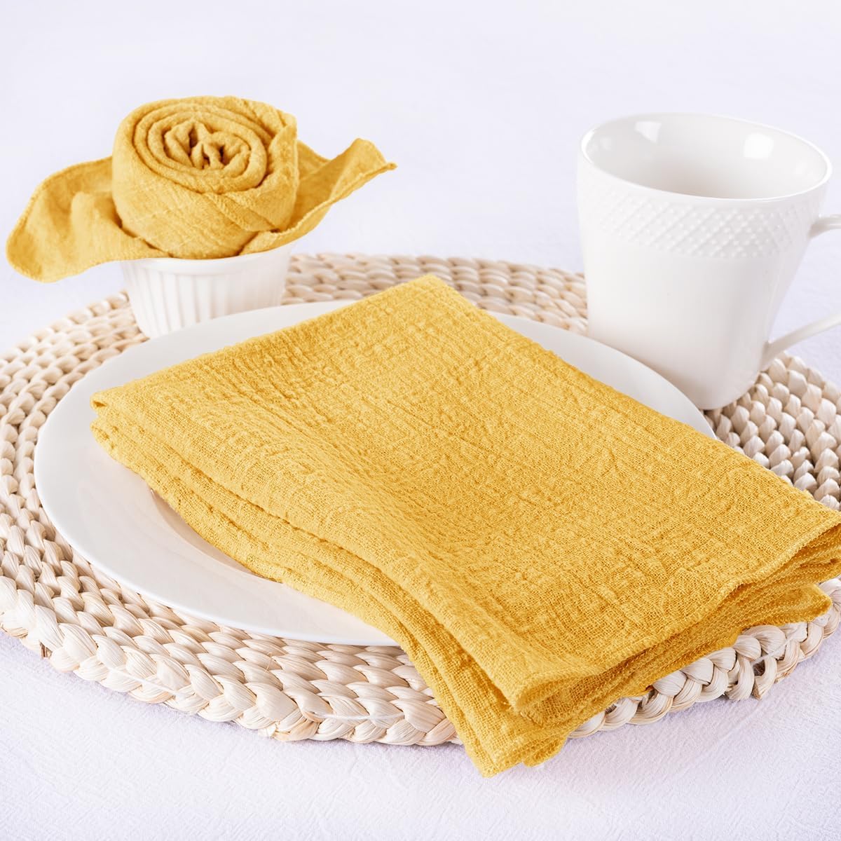 [Breite Anwendung] Geeignet für verschiedene Anlässe, wie Hochzeitsfeier, Babyparty, Brautparty, Valentinstag, Ostern, Erntedankfest, Weihnachten, Neujahr, Teeparty, Jubiläum, Urlaub und andere besondere Anlässe. Die Seihtuch-Serviette ist geeignet für verschiedene Anlässe, wie Hochzeit, Babyparty, Brautparty, Valentinstag, Ostern, Erntedankfest, Weihnachten, Neujahr, Teeparty, Jubiläum, Urlaub und andere besondere Anlässe, bringt einen entzückenden Vintage-, rustikalen und ästhetischen Charme in Ihre Veranstaltung. Bitte nicht bügeln, bleichen oder einweichen. Servietten Taufe 30 Stück Mullservietten 50 Cm, Gaze-Käsetuch Vintage-Boho-Stoffservietten, Großpackung Für Servietten Weihnachten Gold Jede rustikale Mull-Serviette ist 53,3 x 53,3 cm groß. Elegantes Design: Die Seihtuch-Servietten verfügen über eine perfekt zerknitterte Textur, die den Rest Ihrer Party-Dekoration ergänzt und Bankett- oder Hochzeitstischen einen Hauch von Romantik und Eleganz verleiht Die Mullserviette ist weich und verblasst nicht leicht, schrumpft nicht und ist somit wiederverwendbar. Jede rustikale Mull-Serviette ist 53,3 x 53,3 cm groß. [Premium-Material] Die Seihtuch-Serviette ist aus hochwertigem Premium-Gaze-Stoff. Pflegehinweise: Handwäsche in kaltem Wasser mit Feinwaschmittel, oder Maschinenwäsche im Schonwaschgang mit einem Wäschesack, flach hinlegen oder zum Trocknen aufhängen. Handgefärbt aus natürlichem Material. MLMW Goldgelbe Stoffservietten, 6 Stück, Leinen, waschbar, 41 x 41 Osterservietten gibt es in zahlreichen Größen, Farben und Motiven. Bei einigen Herstellern findest du weitere passende Accessoires. Die meisten Servietten werden in einer Stückzahl von 20 angeboten. Mit den passenden Servietten für die Osterfeiertage ergänzt du deine Osterdeko auf stilvolle Weise