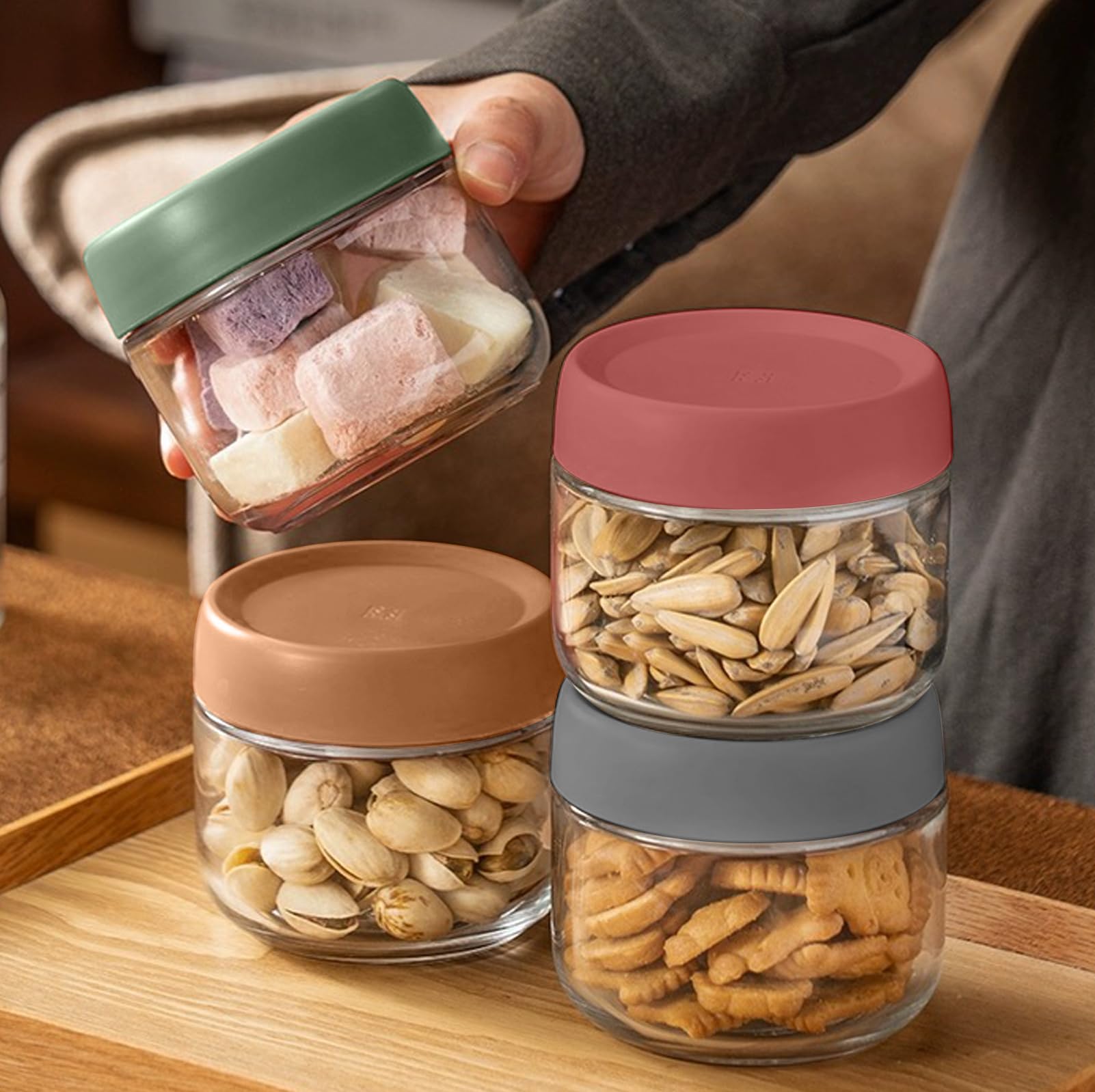 Overnight Oats Gläser LATERN 4 Stück , 360ml Einmachgläser Aus Glas Over Night Oats Glas Sorgen Sie für Sicherheit und Haltbarkeit, ausgestattet mit einem extra dicken Kunststoffdeckel in Lebensmittelqualität und einem verdickten Dichtungsring, um ein Auslaufen zu verhindern. 4Pack Overnight Oats Gläser mit Deckeln und Verwenden Sie sie, um Ihren Kühlschrank organisiert und einsatzbereit zu halten. Und der Silikonring ist zur einfachen Reinigung abnehmbar. Laden4Pack Overnight Oats Gläser mit Deckel und Löffeln, wiederverwendbarer Overnight Oats Behälter aus Glas mit Maß. Einer der vielen verfügbaren Artikel aus unserer LebensmittelbehälterAbteilung hier bei Laden4Pack Overnight Oats Gläser mit Deckel und Löffeln, wiederverwendbarer Overnight Oats Behälter aus Glas mit Maß. Sie können das perfekte Geschenk für einen Junggesellenabschied, Thanksgiving, Weihnachten oder jeden anderen Anlass sein. Die hervorragende Versiegelung verlängert die Frische und Trockenheit von Lebensmitteln und macht es zu einer idealen Aufbewahrungslösung für eine Vielzahl von Lebensmitteln. Durch das klare Glasmaterial können Sie den Inhalt klar erkennen. Bietet maximale Haltbarkeit und Komfort. 【Leicht und Tragbar】Mit einem ultrakleinen Fassungsvermögen von nur 300 ml können Sie es auf Reisen immer als Snack in Ihren Rucksack stecken, was es zu einem guten Helfer für Ihre Heimausflüge macht. Diese Kollektion von Vorratsgläsern aus Glas ist nicht nur äußerst funktional, ihr schlankes Design fügt sich auch mühelos in die Ästhetik Ihrer Küche, Ihres Esszimmers oder jeder anderen Umgebung ein. Es kann auch ein praktisches und süßes Geschenk für Ihre Freunde, Familie und Kollegen sein, um ihnen Komfort zu bieten. Die Deckel verfügen über ein konkaves Design, das ein sicheres Stapeln ohne Angst vor dem Umkippen für eine einfache Lagerung ermöglicht. Spezifikation: Produktname: Vorratsglas aus Glas Flaschenfarbe: transparent Deckelfarbe: Kartenrosa, Kartengrün, Gelb, Kartengrau Fassungsvermögen: 300ml Gewicht: 1050g Abmessungen: Durchmesser: 90mm/3., 54 Zoll; Höhe: 85mm/3., 34 Zoll Packliste: 4 * Vorratsgläser aus Glas HOCHWERTIGES UND LANGLEBIGES DESIGN: Der Müslibehälter besteht aus stabilem Glas und die Deckel sind aus starkem PP. Der Löffel wird auf dem Silikonring fixiert. Die Gläser haben außerdem eine luftdichte Silikondichtung für eine hervorragende Abdichtung und vollständige Auslaufsicherheit 4 Stück Overnight Oats 357996965359