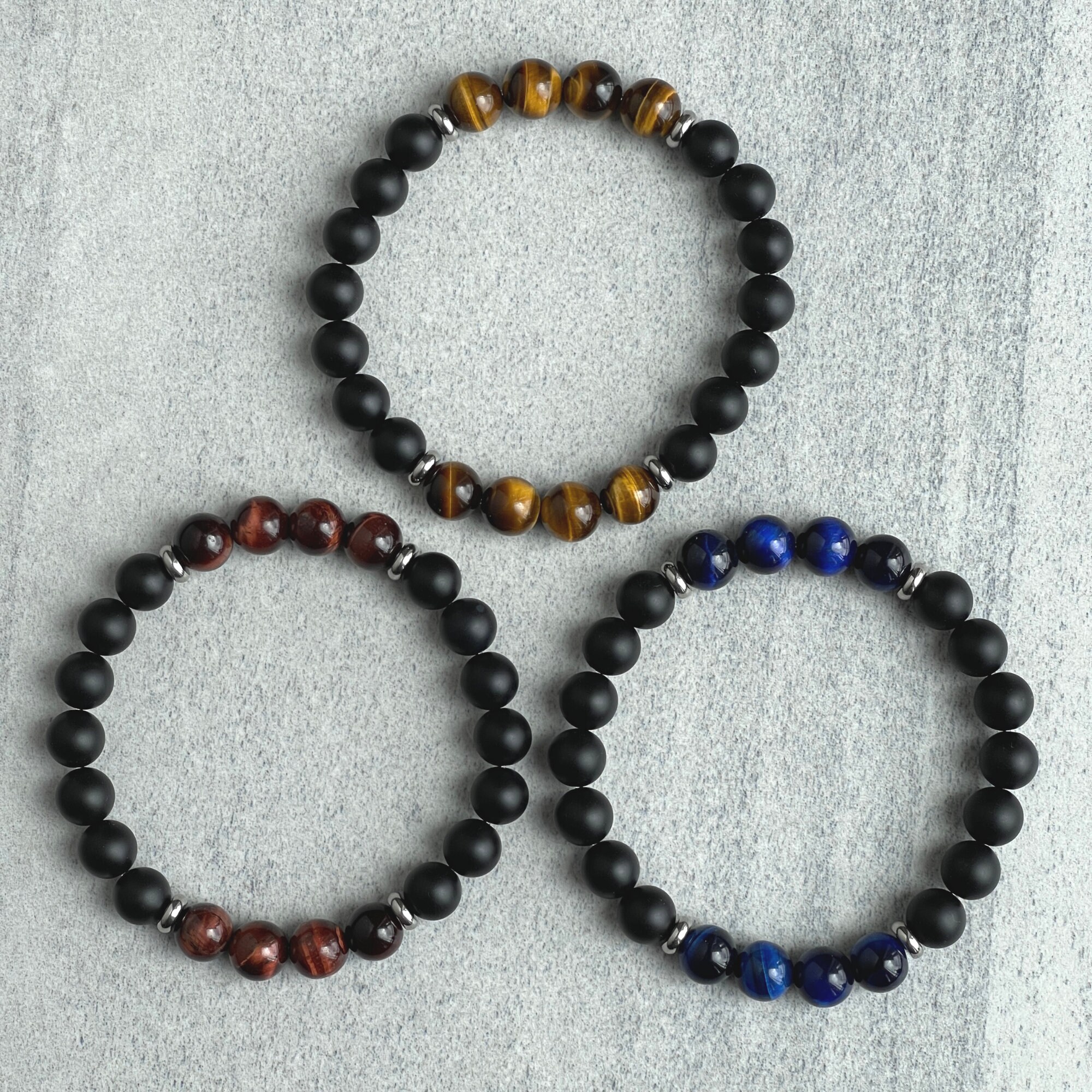 XSDSLS 3 Stück Perlenarmband Herren 8 MM Elastische Naturstein Armband Kreuz Tigerauge Armband Lavastein Armband Schwarzer Turmalin Armband Herren Armband Für Männer Frauen (Set5