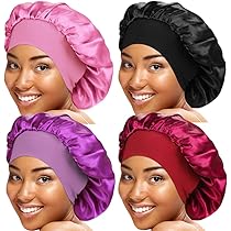 KEYRI 4 Stück Schlafhaube Satin Zum Schlafen Bonnet Haarhaube