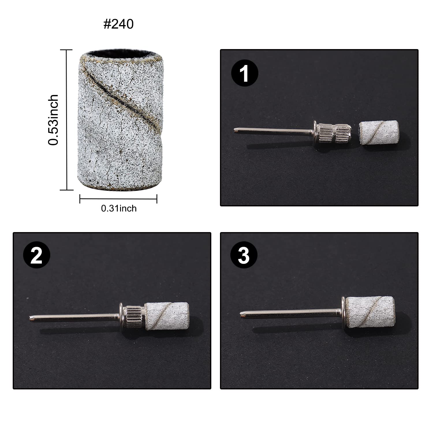 100 Stück Schleifkappen Drill Sanding Bands, 180" Nagelfräser