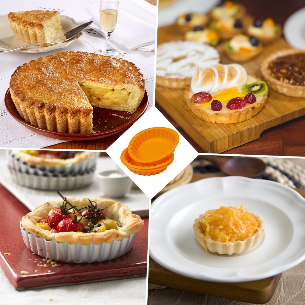 Beiyoule 8 Stück Silikon-Tarte- Und Kuchenformen, 10,2 Cm, Geriffelte Mini- Tarte-Form, Rund, Antihaftbeschichtet, Quicheform, Backformen Für DIY-Backkuchen, Torten, Mousse, Kuchen, Kleine Desserts