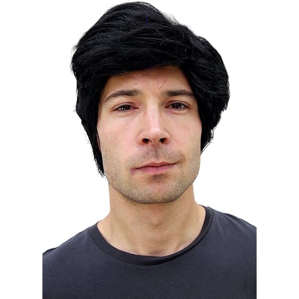 Perücke Herrenperücke Unisex Schwarz Wellig Schlagersänger Gigolo 70er