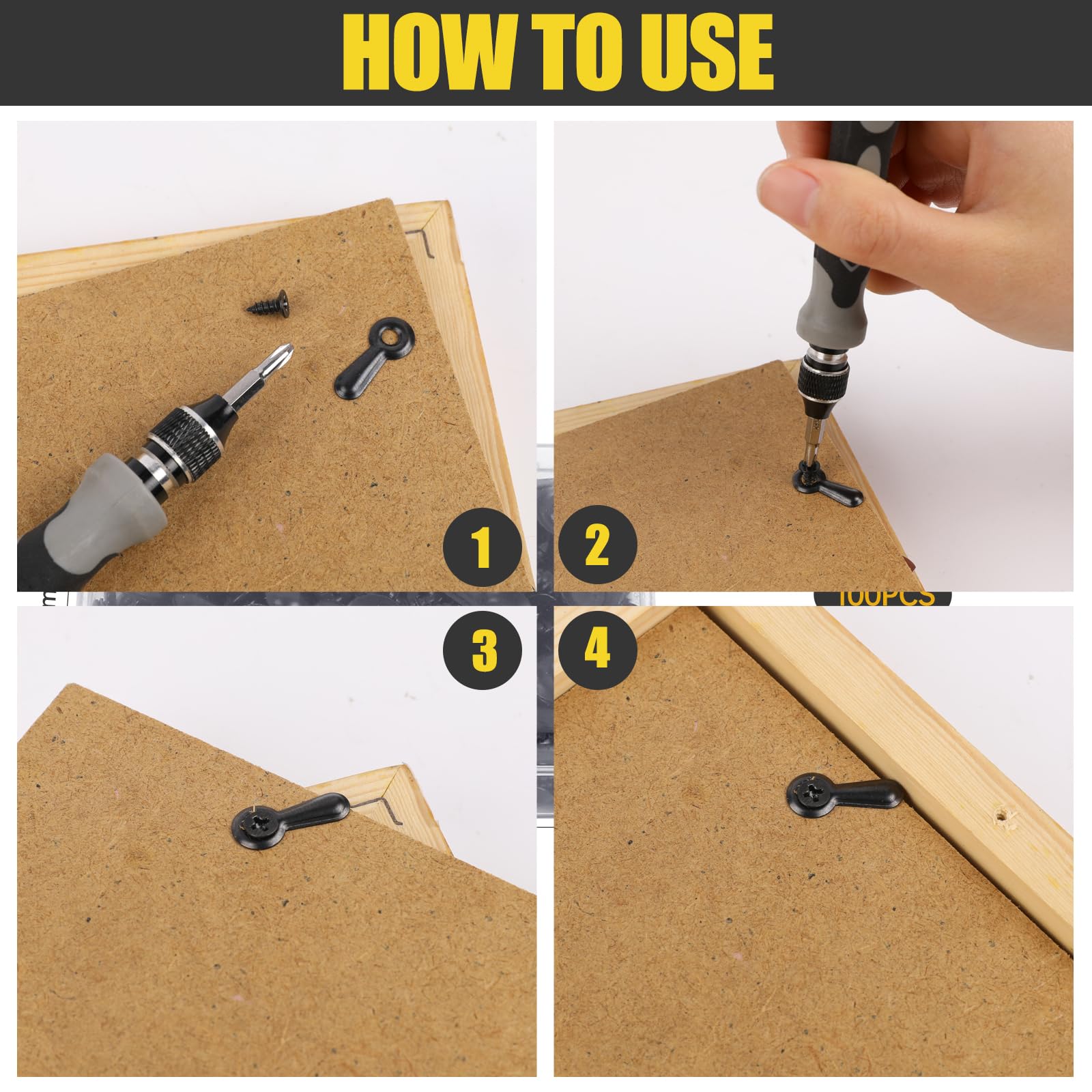 QUARKZMAN 200 Stück Bilderrahmen Rückwand Hardware Clips Mit 200 Stück Schrauben Foto Rahmen Drehknopf Befestigungssatz Rückwand Für Handwerk Hängende Zeichnen, Schwarz
