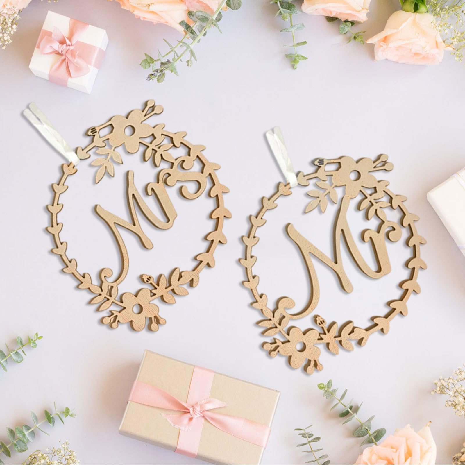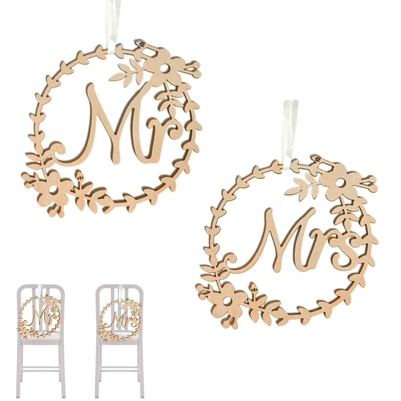 1 Paar Mr And Mrs Stuhlschilder Holz Braut Und Bräutigam Schilder Dekoration Stuhl Rücken Hängende Anhänger Mit Band Hochzeit Hängeschild Für Hochzeit Feier Antrag Jahrestag Party Valentinstag Weiß