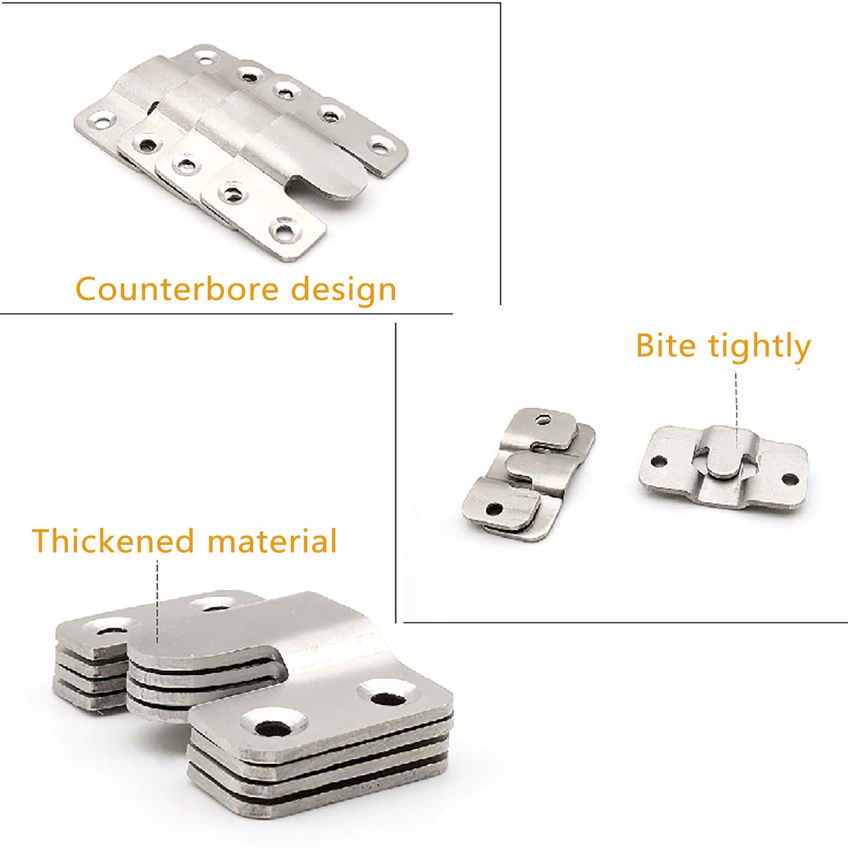 Z Klemmen zum Aufhängen, 4 Stück Bildaufhänger für Schwere Bilder 15cm Wandbefestigung Aufhängeschiene Z Profil Aluminium French Cleat für Bilder Spiegel Rahmen Vielfältige Anwendungsmöglichkeiten: Neben der Heimdekoration eignen sich unsere Metall-Wandhalterungen für Büros, Galerien, Ausstellungsräume und kommerzielle Umgebungen und können Kunstwerke, Spiegel, Ornamente, Bilderrahmen oder andere Dekorationsstücke aufhängen. Erfüllen Sie verschiedene Bedürfnisse Sicherer dekorativer Haken: Unsere französischen Bilderaufhänger sind aus hochwertiger Aluminiumlegierung, rostet nicht, sorgt für starke Unterstützung und lange Haltbarkeit. Sein innovatives Design beinhaltet die französische Cleat versteckte Haken-Technik, die Ihre Bilderrahmen sicher an der Wand befestigt, wodurch Wackeln und Instabilität verhindert werden. Was Sie erhalten: Das Paket enthält 8 Stück (4 Sets) französische Stollenaufhänger, 10 Stück M4 x 8 Schrauben, 10 Stück M4 x 25 Schrauben, 10 Stück M4 x 25 Kunststoffanker und kleine Werkzeuge, sparen Sie Zeit und Energie. Vielfältige Anwendungsmöglichkeiten: Neben der Heimdekoration eignen sich unsere Metall-Wandhalterungen für Büros, Galerien, Ausstellungsräume und kommerzielle Umgebungen und können Kunstwerke, Spiegel, Ornamente, Bilderrahmen oder andere Dekorationsstücke aufhängen. Search faster with PicClick Visual Search. GIONAR Französische Klammer-Bilderaufhänger, robuste Halterung, 15,5 cm, Z-Stange, ineinandergreifende Wandhalterung, zum Aufhängen von Wandbildern, Spiegeln, Rahmen, Kunstwerken, Fotos, Z-Halterungen Verwenden Sie einfach die mitgelieferten kleinen Schrauben auf einer Seite, um den Kleiderbügel am Rahmen zu befestigen, und die andere Seite, um den Kleiderbügel mit den großen Schrauben an der entsprechenden Position an der Wand zu fixieren, und drücken Sie ihn sanft hinein, sehr einfach und bequem. Spiegel Aufhängung Luxiv 4 Paar Französische Klammer-Bilderaufhänger Z Klemmen