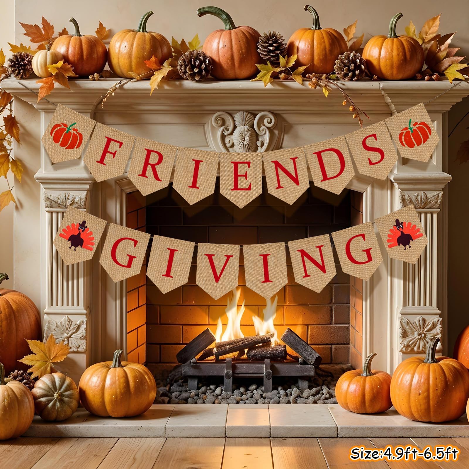 Friendsgiving Party Dekorationen, Friendsgiving Banner Sackleinen