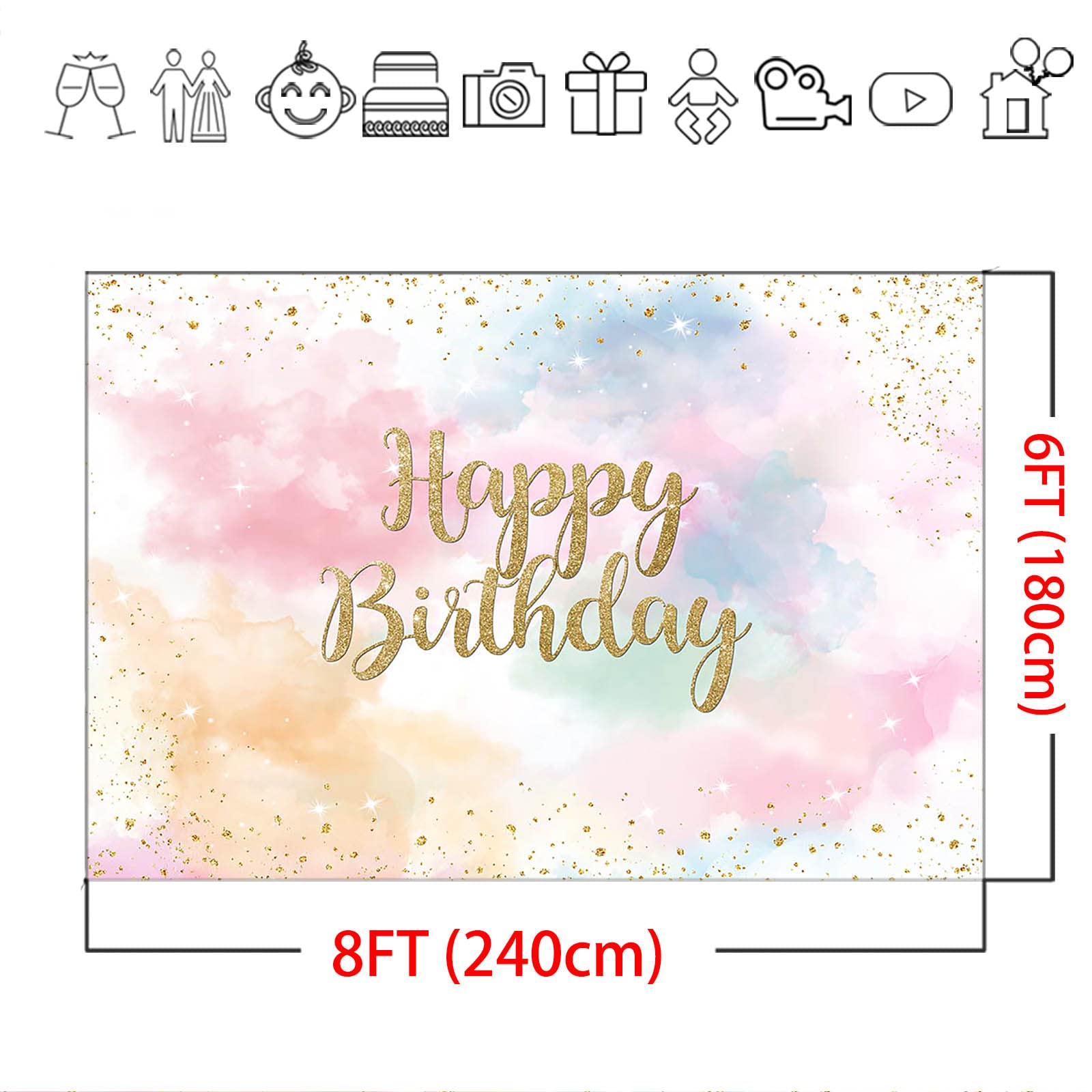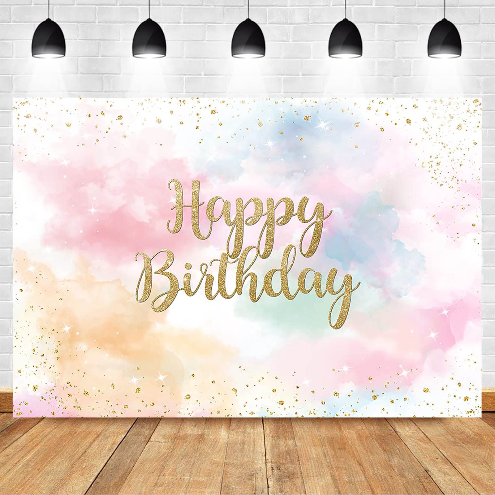 AIBIIN 2,1 X 1,5 M Happy Birthday Hintergrund Für Mädchen Frauen Pastell Regenbogen Wolke Fotografie Hintergrund Glitzer Gold Punkte Süß 16 Geburtstag Party Dekorationen Banner Fotostudio Requisiten