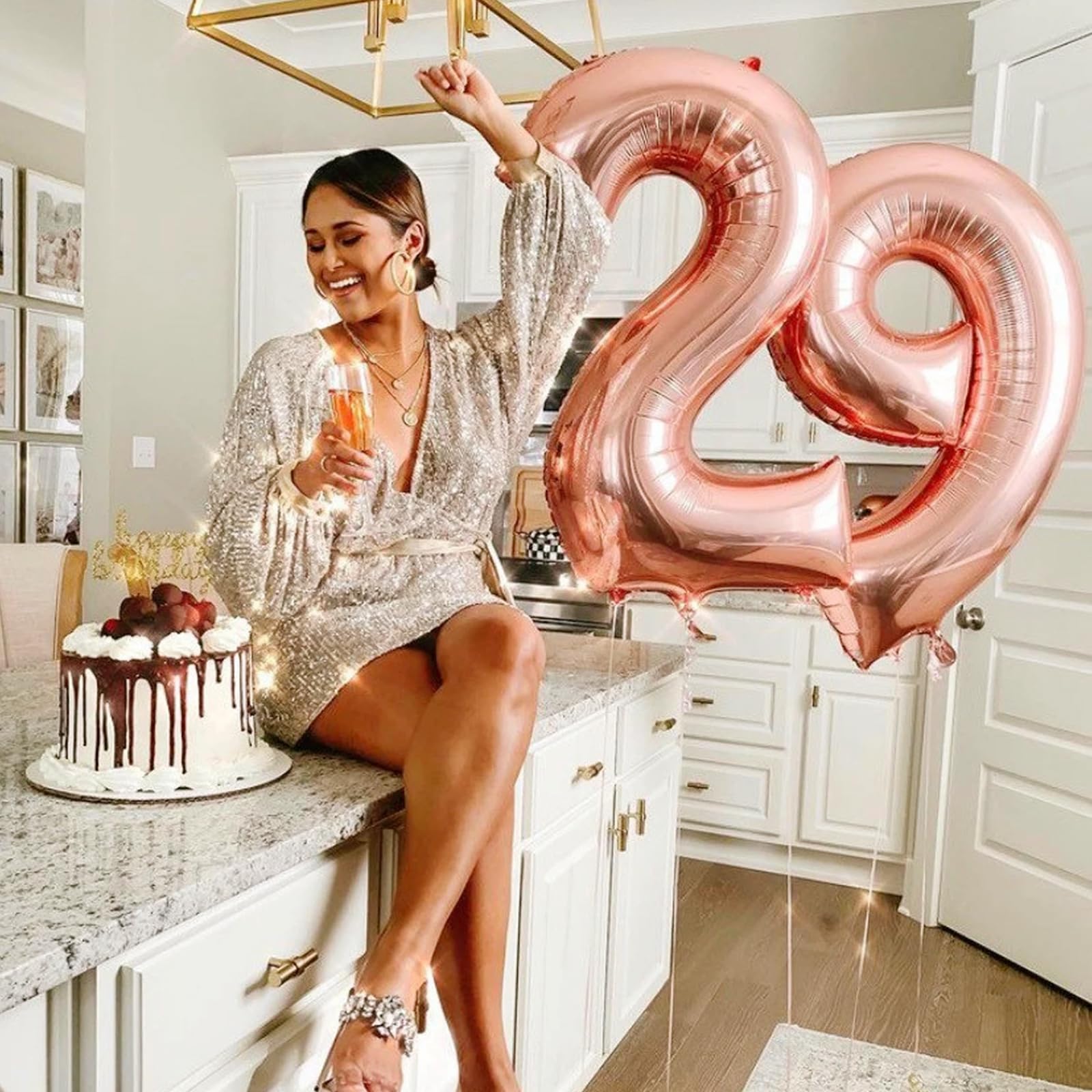 TONIFUL 40 Zoll Nummer Folienballon 0 To 9 In Roségold Helium