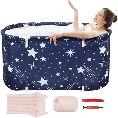 Joparri Faltbare Badewanne Erwachsene Größe L 132x60x50cm Tragbare Klappbare Mobile Badewanne Ideal Für Kleine Badezimmer | Foldable Bathtub | Mit Seifenkorb| Schnelle Entwässerung, Blau
