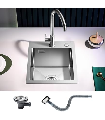 Abgerundete Ecken mit einem Radius von R10 mm und einer sehr glatten Oberfläche ermöglichen es Ihnen, die Spüle leicht zu reinigen Hochwertiges Material: Hergestellt aus 18-Gauge-T304-Edelstahl, bietet diese Spülbecken überlegene Stärke, Haltbarkeit und Beständigkeit gegen Rost und Flecken und sorgt für eine lange Nutzung in geschäftigen Küchen 50,8 cm große Küchenspüle PVD Nano-Silber - TSIBOMU 50,8 x 40,6 cm Einzelbecken Küchenspüle mit 1 Wasserhahnloch, 16 Gauge Edelstahl Topmount Drop Küche Bar Spüle (Silber) 【Schnelle und vollständige Entwässerung】 Edelstahlspüle mit X-förmiger Wasserführung am Waschbeckenboden ist so konzipiert, dass sie schnell und vollständig abfließen kann, ohne zu verstopfen. TSIBOMU Küchenspüle, Waschbecken, Spültisch, 50,8 cm, Edelstahl, Einzelschüssel, kleine Küchenspüle, gebürstetes Nickel, 50,8 x 40,6 x 22,9 cm Spülbecken Küche 50,8 Cm Große Küchenspüle PVD Nano-Silber - TSIBOMU 50,8 X 40,6 Cm Küchenspüle 86x43,5