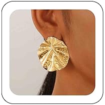 Inateannal Übertrieben Lotus Blatt Ohrringe Große Scheibe Baumeln Ohrringe Gold Textur Scheibe Münze Ohrringe Metall Rundes Blatt Ohrringe Lotus Blatt Tropfen Ohrringe Aussage Textur Blume Ohrringe