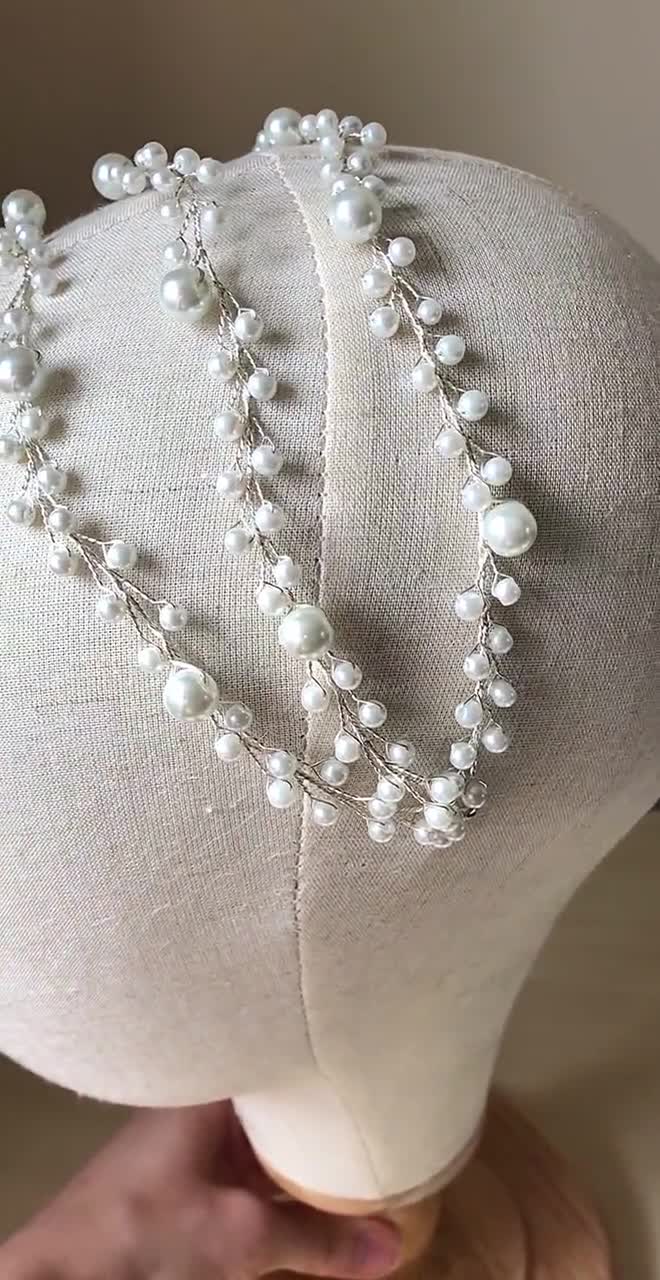 Weiße Perle Stirnband, Vintage Haarband, Perlen Kopfband