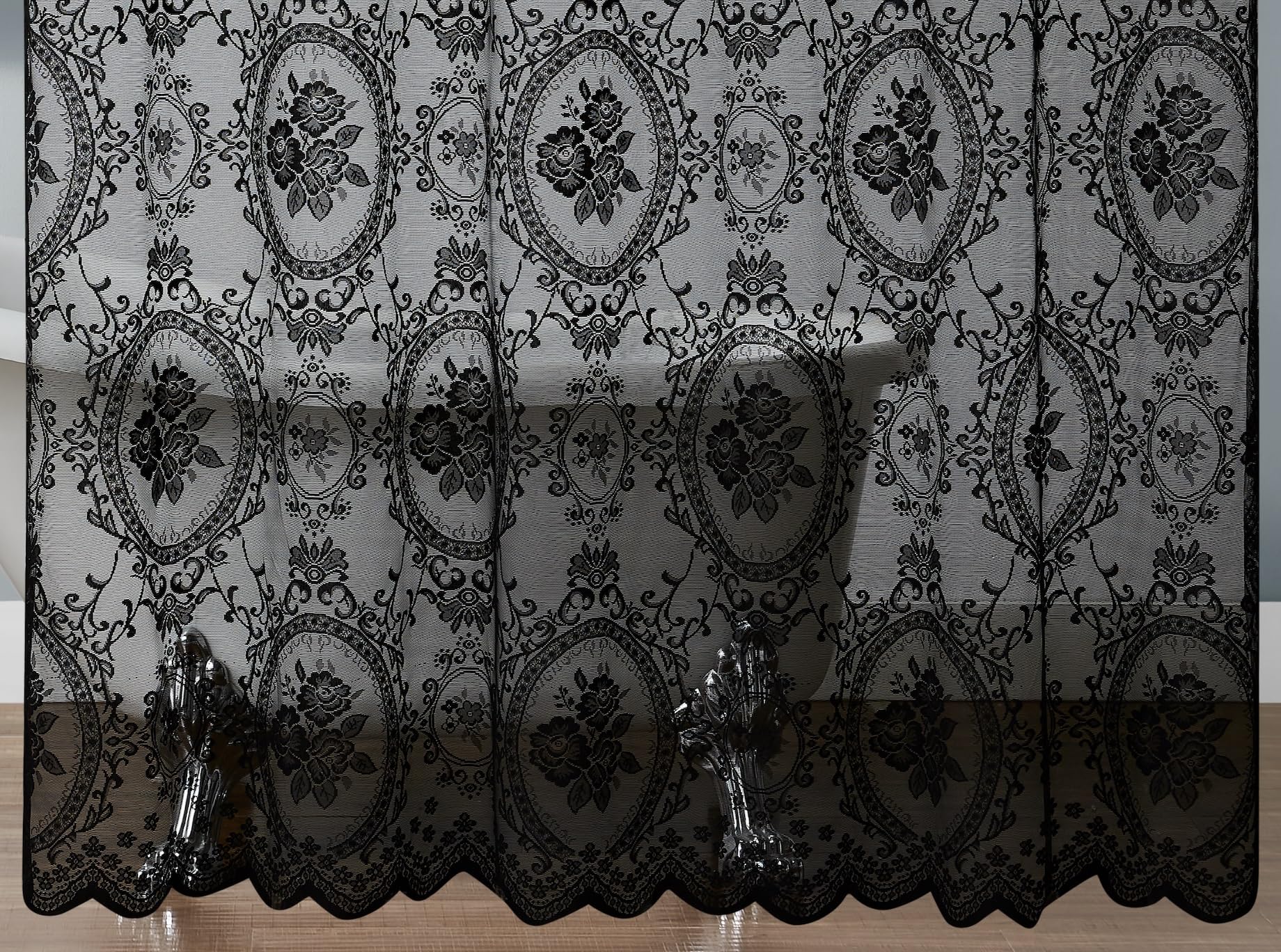 NOIR Gothic Duschvorhang Mit Weißem Volant, 213 Cm, Perfekt Für Gothic-Badezimmerdekor, Gothic, Weißer Vintage-Duschvorhang, SH Weiß-Weiß 84