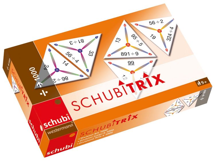 SCHUBITRIX Mathematik - Subtraktion bis 1000, 3.-4. Klasse von Schubi Lernmedien günstig kaufen bei . ✅ Geprüfter Online-Shop ☎ Persönliche Beratung Beschreibung Mit SCHUBITRIX Mathematik lernt jedes Kind spielend rechnen, denn hier wird nach den Regeln des beliebten Dominospiels geübt. Doch aufgepasst: Es müssen immer alle drei Seiten der dreieckigen Spielkarten im Auge behalten werden! Die Dreiecke aus stabilem Karton werden so aneinandergelegt, dass Rechnung und Ergebnis zusammenpassen Nur wer richtig rechnet, hat am Ende das Lösungsmuster zur Selbstkontrolle auf dem Tisch liegen. 7-Tage-Challenge zum halbschriftlichen Verfahren der Multiplikation, 4 Mit SCHUBITRIX Mathematik lernt jedes Kind spielend rechnen, denn hier wird nach den Regeln des beliebten Dominospiels geübt. Jeweils 2 Spiele zu 24 Karten in verschiedenen Schwierigkeitsgraden, mit Anleitung und Lösungsbildern. Doch aufgepasst: Es müssen immer alle drei Seiten der dreieckigen Spielkarten im Auge behalten werden! Dienes Material SCHUBITRIX Mathematik - Längenmaße – Westermann Schweiz – Passgenaue Rechenspiele 1. Klasse Die Dreiecke aus stabilem Karton werden so aneinandergelegt, dass Rechnung und Ergebnis zusammenpassen. Spiel 1: Multiplikation eines zweistelligen Faktors (11 bis 20) mit einem einstelligen Faktor; Division einer zwei- oder dreistelligen Zahl durch einen einstelligen Divisor mit Ergebnissen von 1 bis 20 Spiel 2: Multiplikation eines einstelligen Faktors mit einem zweistelligen Faktor (21 bis 99); Division einer dreistelligen Zahl durch einen einstelligen Divisor mit zweistelligem Ergebnis. So macht Rechnen mit den SCHUBITRIX-Domino-Kärtchen Spaß: