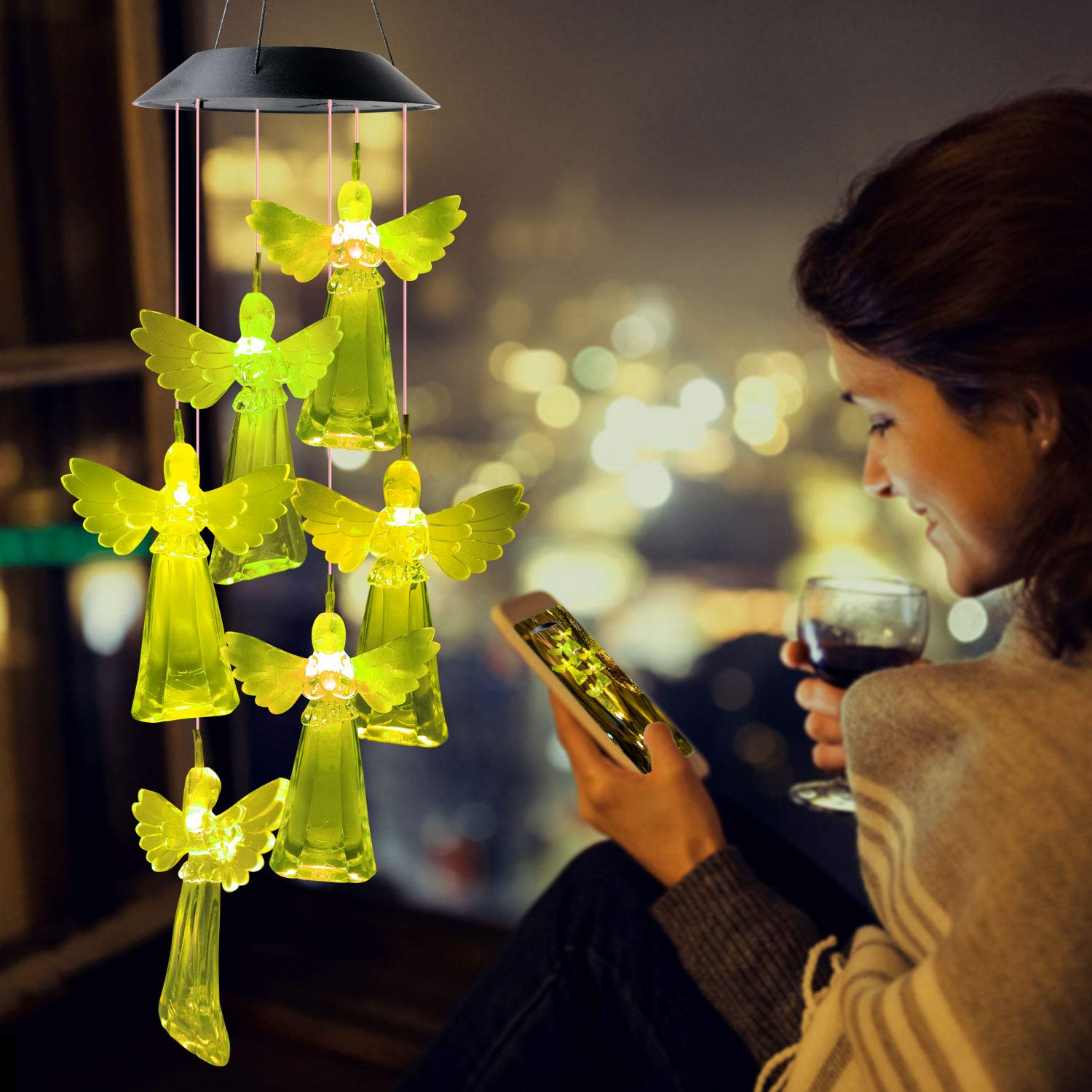 Solar-Engel-Windspiel Für Den Außenbereich, 6 LEDs, Hängende Solarleuchten, Gartendekoration, 4 Röhren, 76,2 Cm, Engelsgeschenke Für Mutter, 6 Stunden Aufladung, 8 Stunden Beleuchtung, Warmweißes